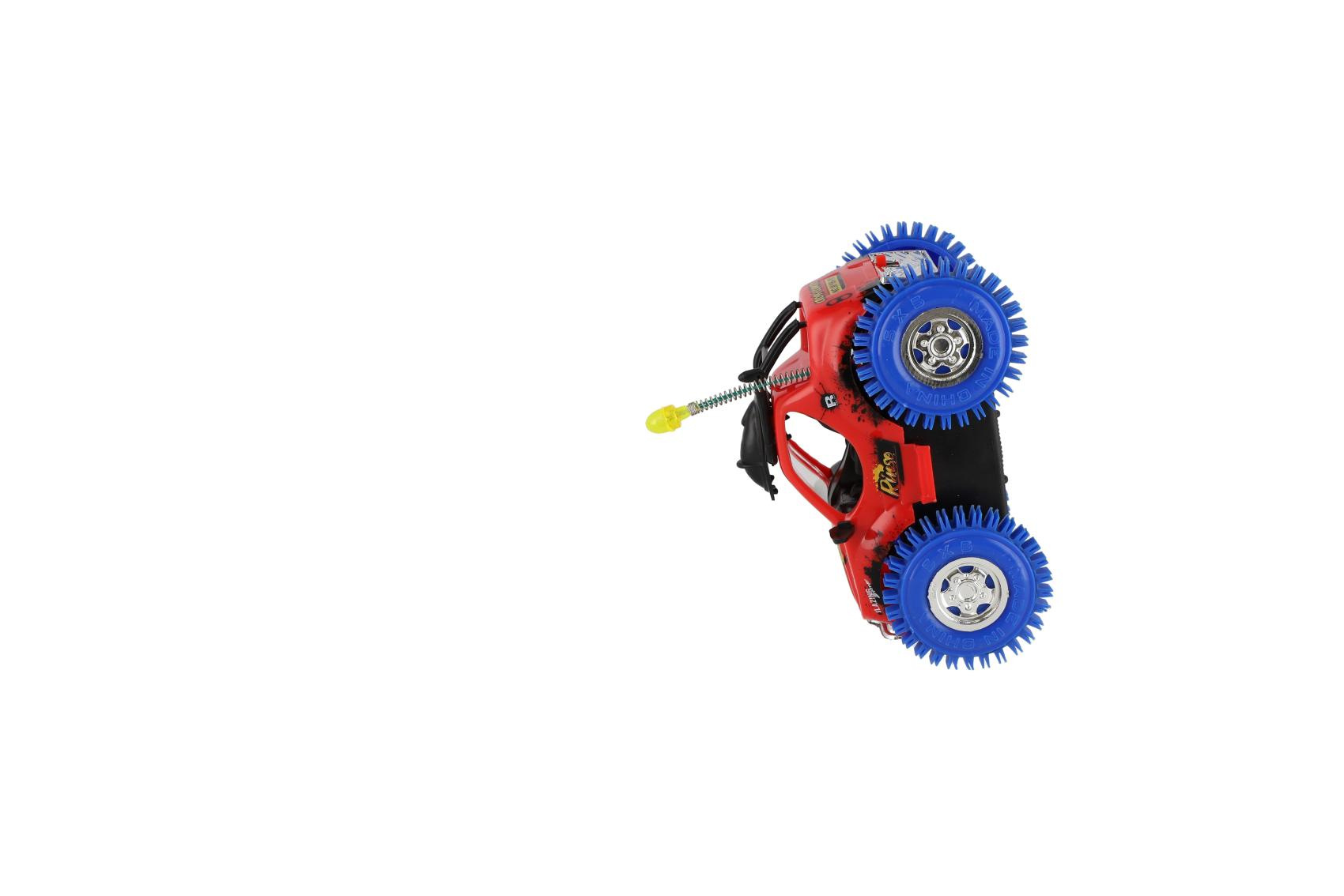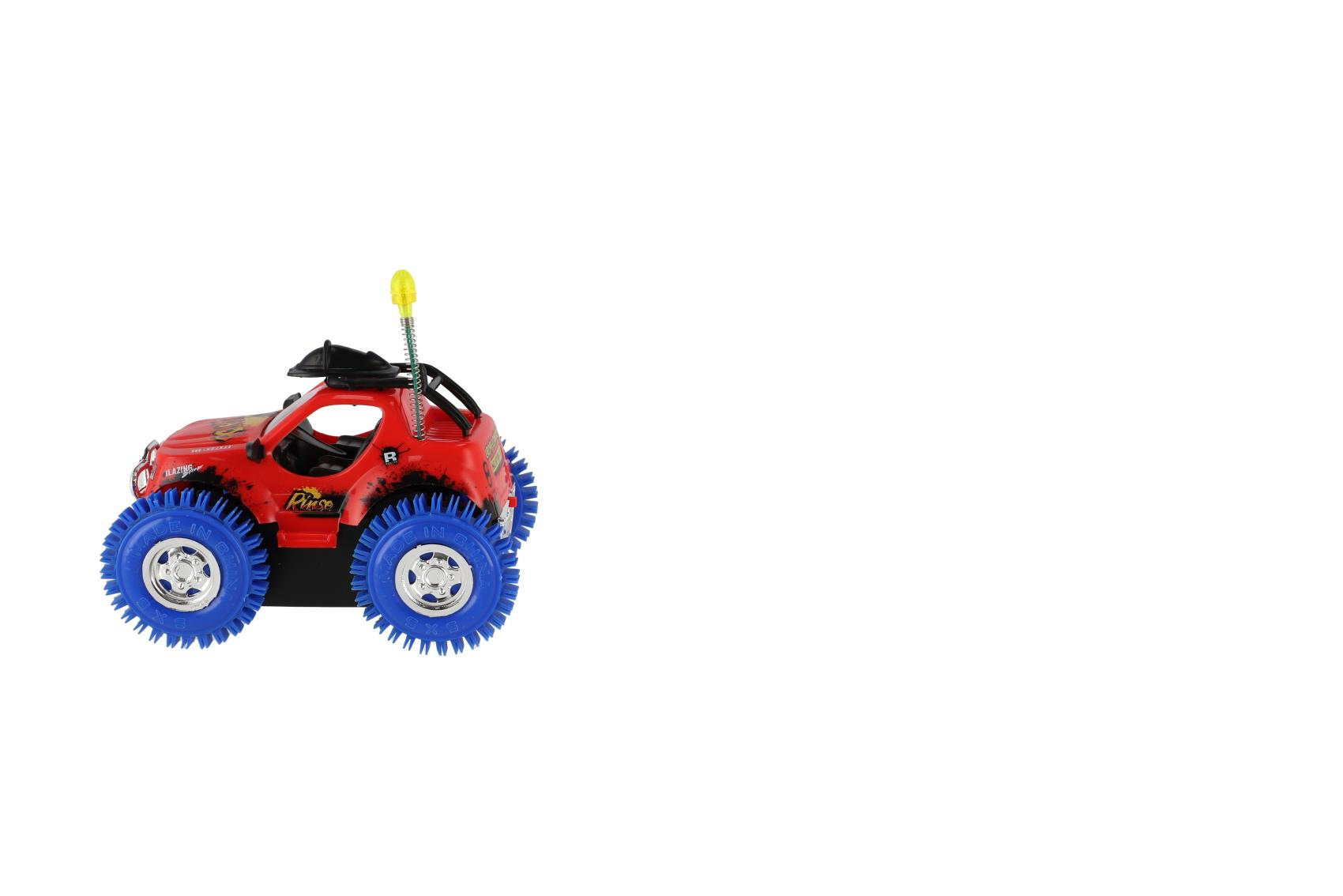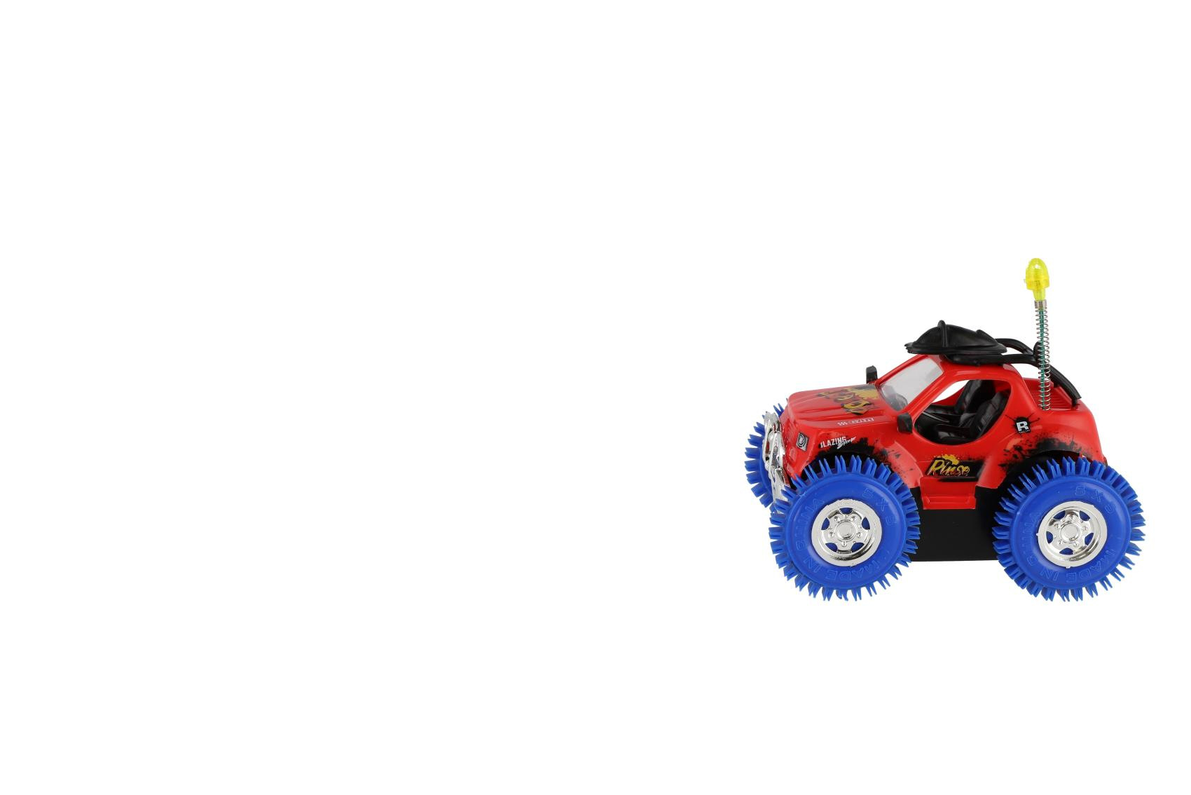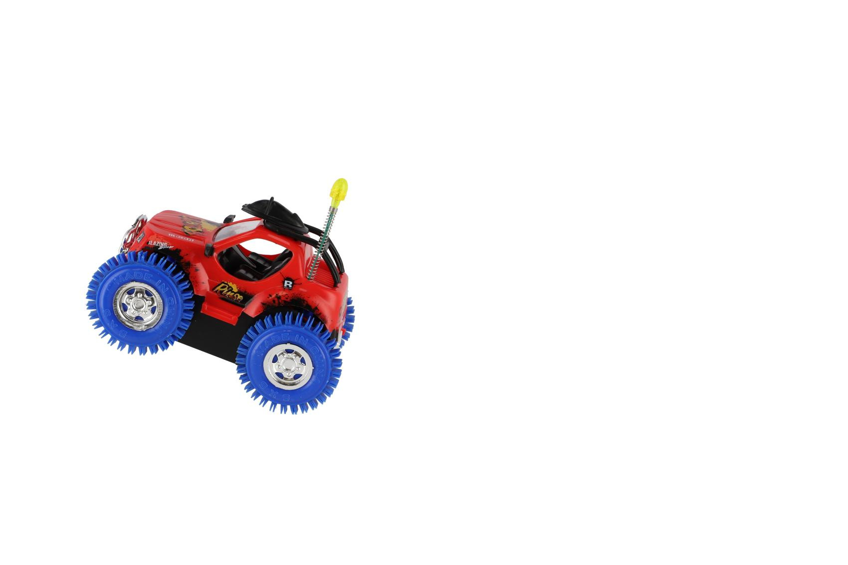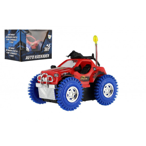 Parádní kaskadérské auto, které zvládne neuvěřitelné triky! Při nárazu do překážky se otočí o 360° a pokračuje v jízdě. Díky barevnému provedení, světelným efektům a odolným kolům je ideální hračkou pro všechny malé závodníky. Odolná plastová konstrukce. Napájení na baterie 3 x AA. Vhodné pro děti od 3 let.