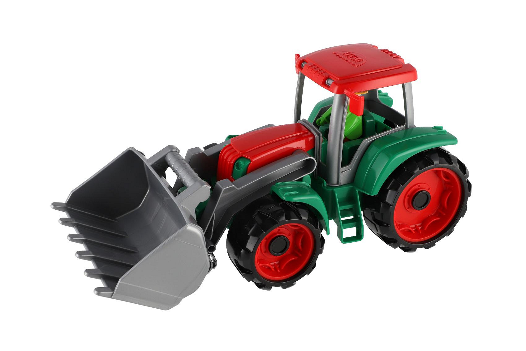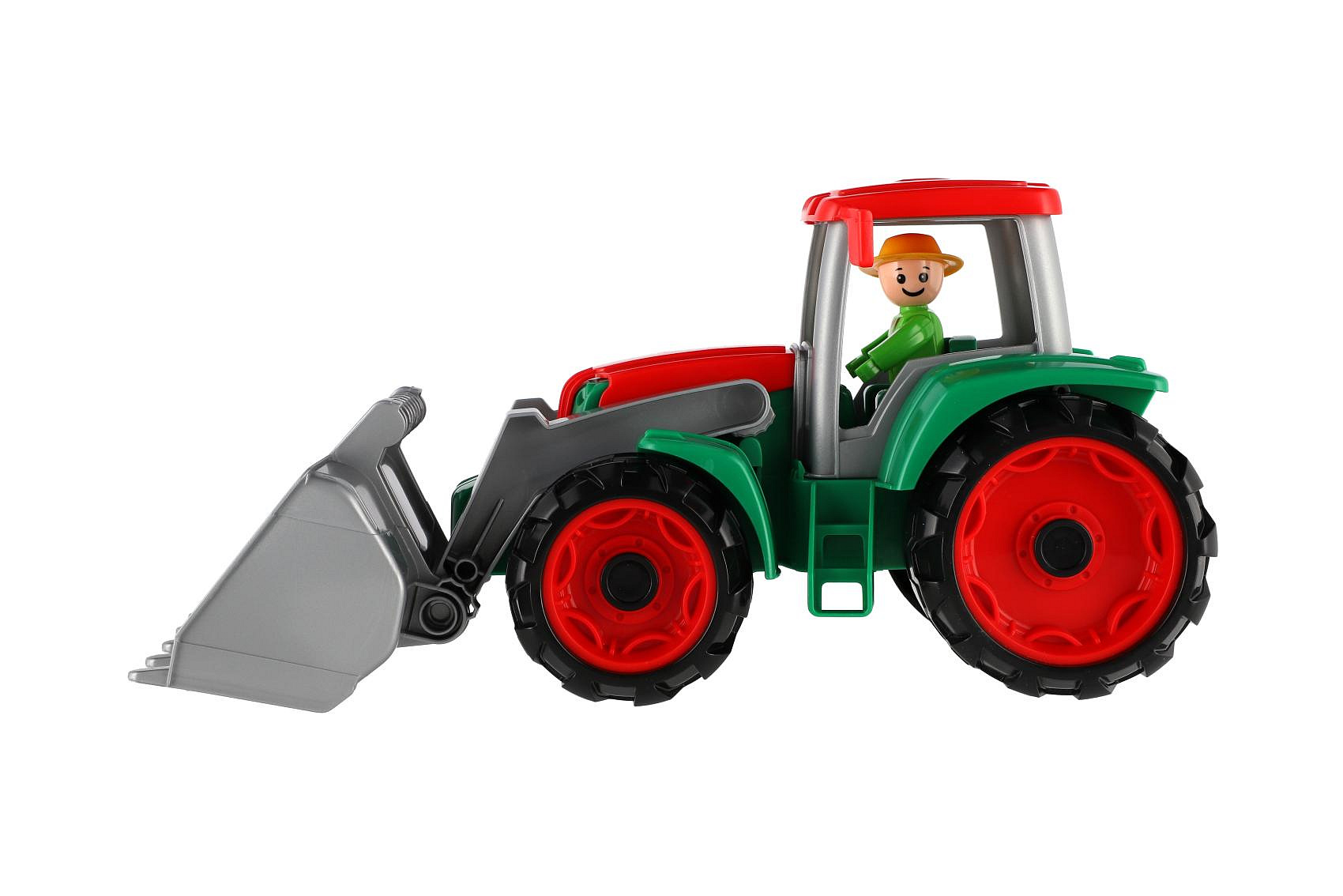 Traktor Truxx je vyroben z kvalitního plastu. Hračka má velmi pevnou stavbu. Traktor je velký 35 cm. Je plně mechanicky funkční. Obsahuje odklopitelnou kabinu s aktivním panáčkem. Vhodné od 2 let.