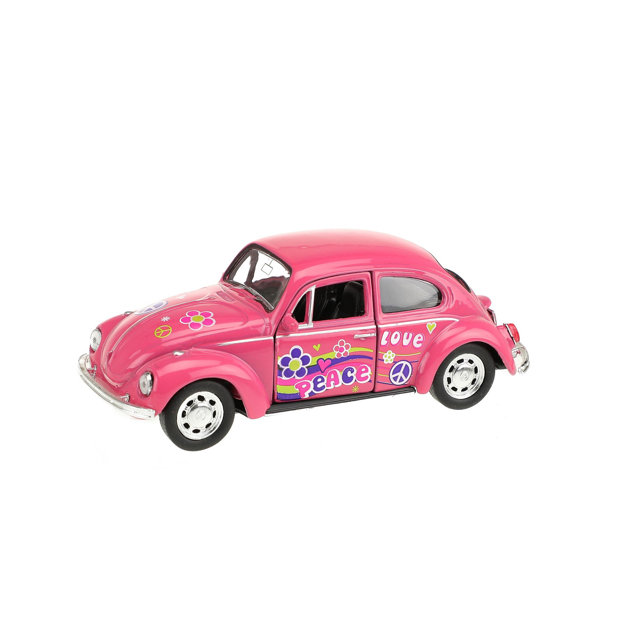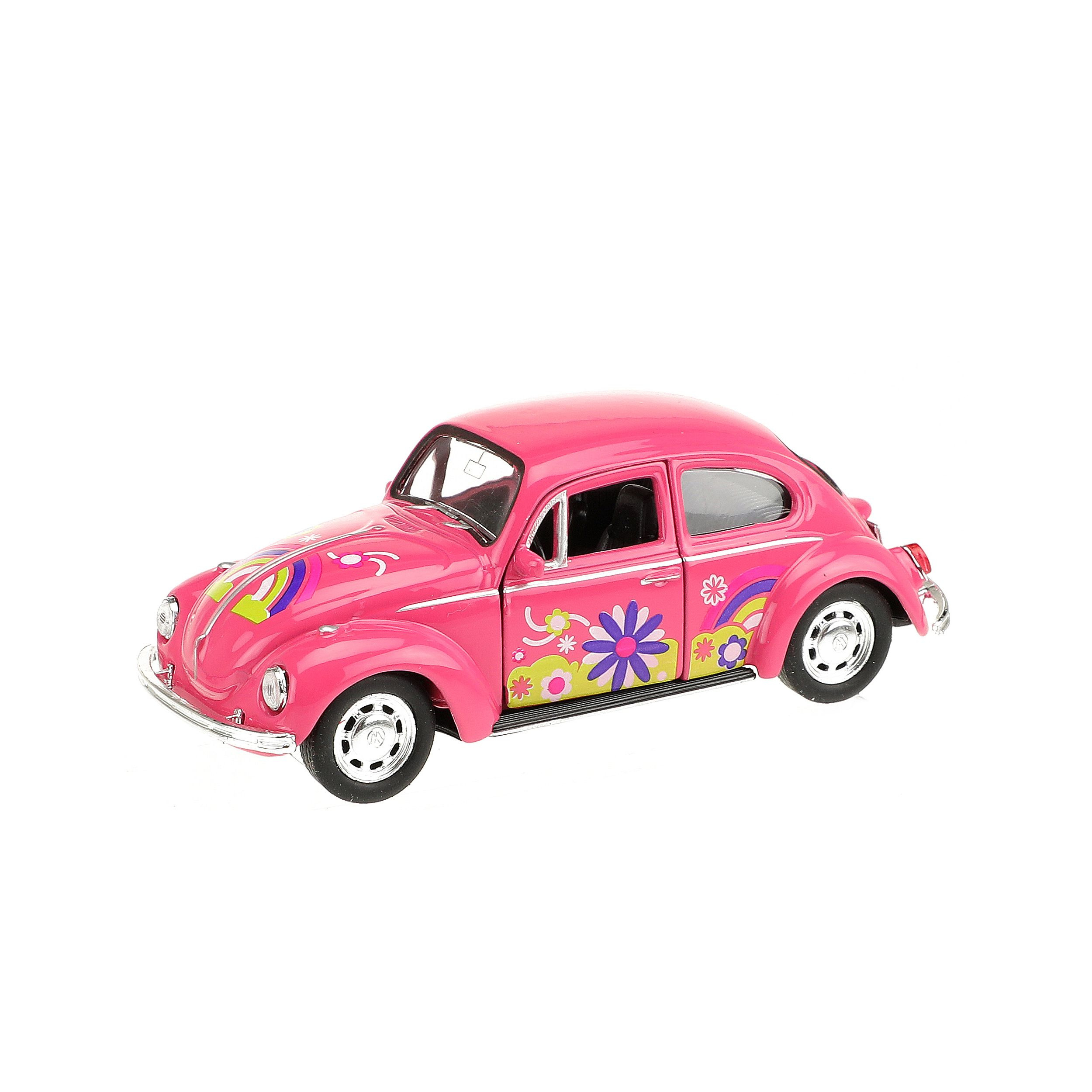 Krásný model VW beetle na zpětné natažení s květinovým postiskem je tady v měřítku 1:32. Autíčko o velikosti 12 cm může mít každý z nás neustále u sebe. Vejde se do větší kapsy nebo mamince do kabelky a cestování či dlouhé čekání tak rychle uteče. Skvělé na hraní nebo závodění. Rozměry: 12 x 5 x 4,5 cm Vhodné pro děti od 3 let