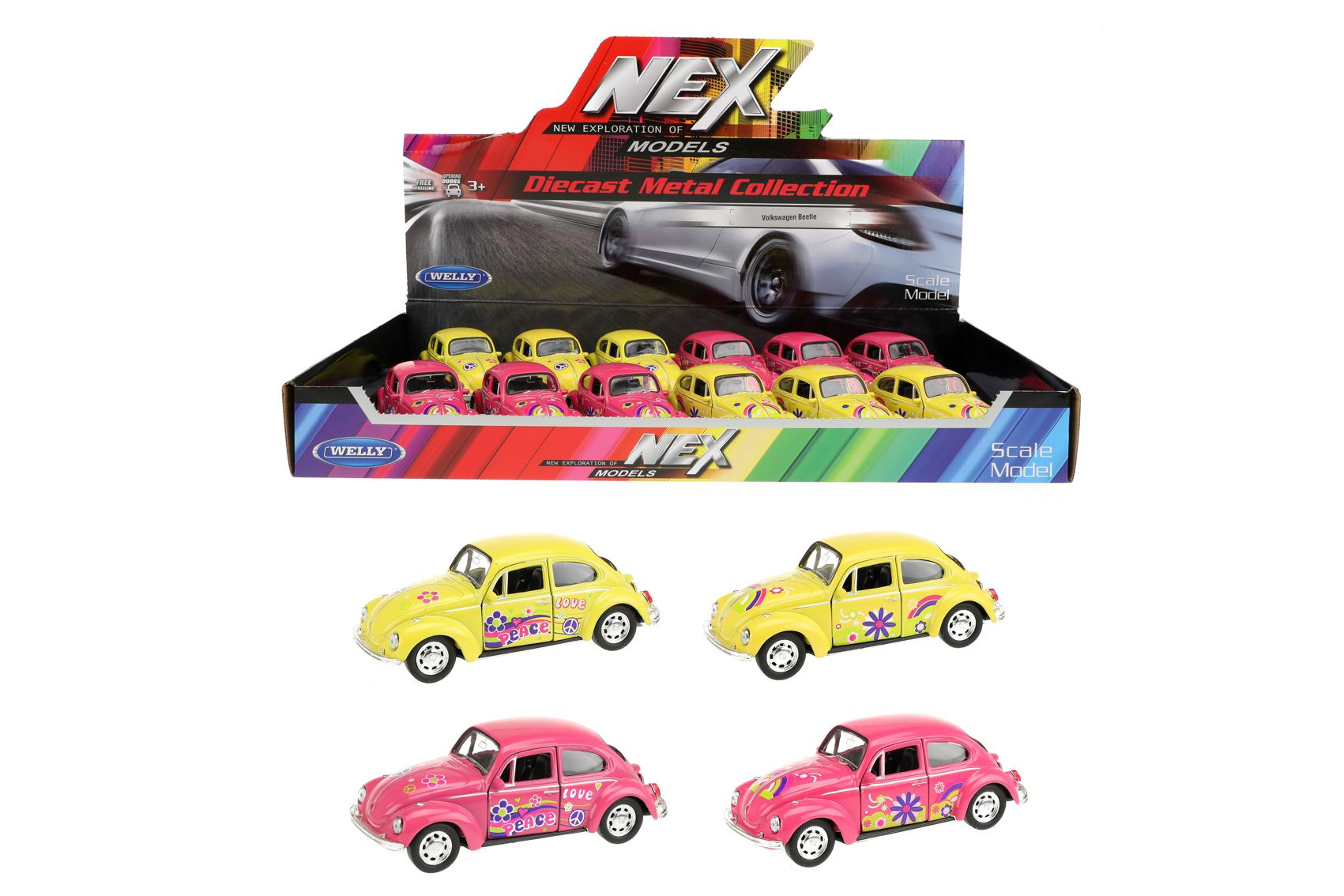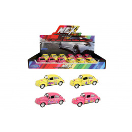 Popis Teddies Auto Welly Volkswagen Beetle kov/plast 12cm 4 farby na spätné natiahnutie 12ks v boxe