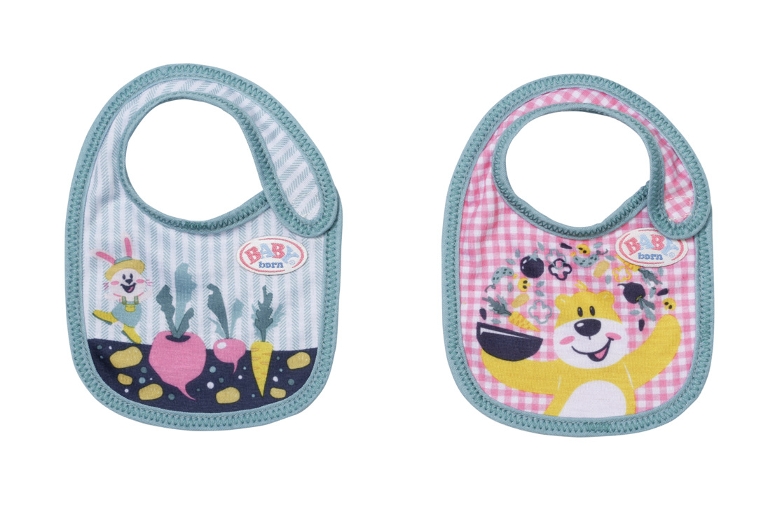 To se dalo čekat. Dva bryndáky na výběr a BABY born se prostě nemůže rozhodnout, který si vezme k obědu. Na modelu se zelenými proužky zajíček Benno vesele hopká mezi záhony s mrkví a červenou řepou. Model s růžovým károvaným vzorem má na sobě potisk šéfkuchaře medvídka Bruna, který vaří zeleninovou polévku. Doufejme, že výběr jídla nebude trvat stejně dlouho jako výběr bryndáku...