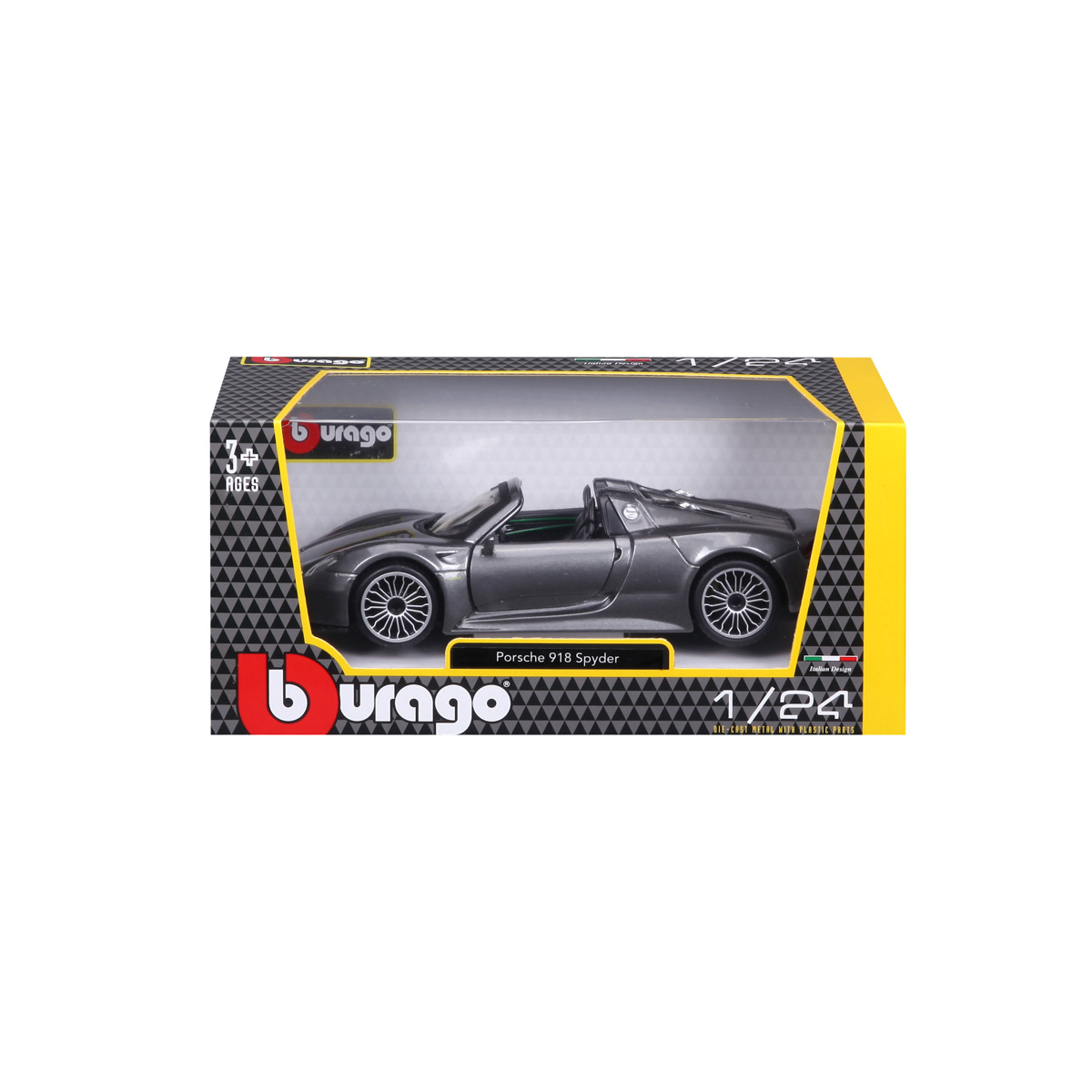 Modely automobilů Bburago v měřítku1:24 jsou sbírkou krásného designu s vysokým důrazem na přesnost detailů. Modely jsou vyrobeny z litého kovu s plastovými detaily. Většina modelů z kolekce má otevírací dveře, kufr nebo kapotu. Některé z modelů mají funkční řízení. Baleno v krabičce. Nevhodné pro děti do 3 let. Rozměry balení: 10,5 x 23 x 11,5 cm. Věk 3+