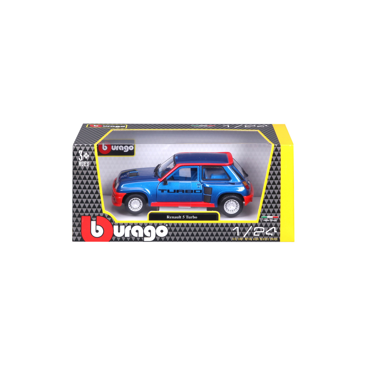 Bburago - Auta HOBBY, Renault 5 Turbo, modrá metalíza-červená, 1:24