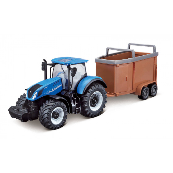 Bburago - FARMLAND, New Holland T7.315 HD s přívěsem pro přepravu hospodářských zvířat, 10 cm