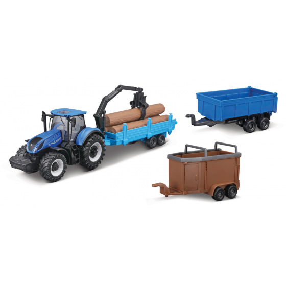 Bburago - FARMLAND, Set New Holland T7.315 HD se třemi přívěsy, 10 cm