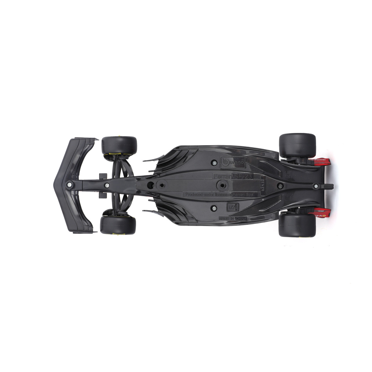 Bburago modely závodních vozů Formule 1 v měřítku 1:24 z kolekce FORMULA RACING jsou sbírkou krásného designu s vysokým důrazem na přesnost detailů. Součástí modelů je plastová figurka jezdce F1 v mistrovské póze. Modely F1 ze stáje Ferrari SF-23 (2023) jsou vyrobeny z litého kovu s plastovými detaily. Každý z modelů je v klasickém závodním designu a se závodním číslem. Baleno v krabičce. Nevhodné pro děti do 3 let. Rozměry balení: 12,7 x 28 x 12,7 cm. Věk: 14+