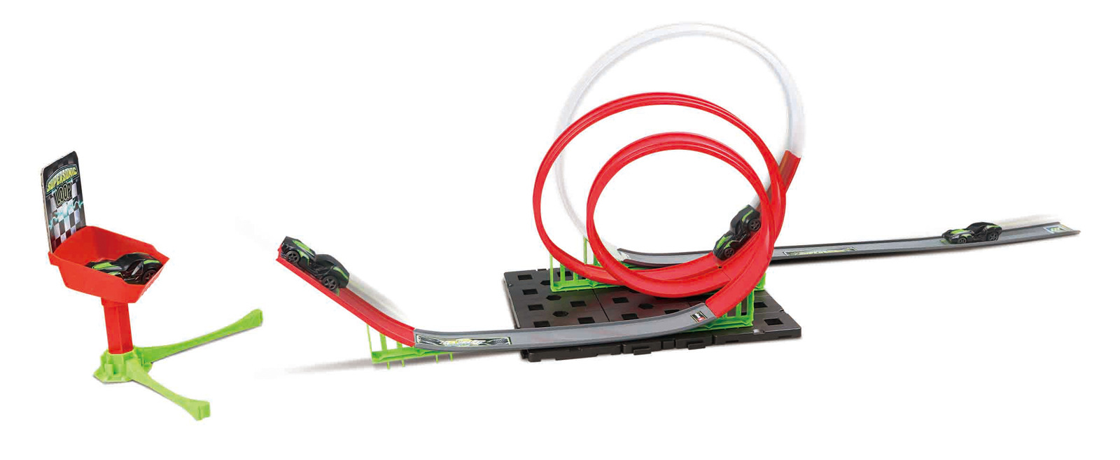 Loop set závodní dráha Loop set – SuperSonic Launch 3 v1 z kolekce GoGears Extreme přináší dětem nekonečné hodiny zábavy. Loop set – SuperSonic Launch obsahuje několik extrémních smyček. Projeďte několika smyčkami a z můstku zkuste zasáhnout cíl. Trať lze překonfigurovat. Tři možnosti rozvržení trati. Součástí sady je závodní autíčko, která funguje na principu zatáhni a jeď. Dojezd autíčka je až 25 metrů a jeho rychlost přesahuje 840 km/h. Dráha je vyrobena z odolného plastu. Baleno v krabičce. Nevhodné pro děti do 3 let. Rozměry složené dráhy: 22 x 79 x 122 cm. Rozměry balení: 28 x 50,5 x 5,5 cm. Věk: 3+