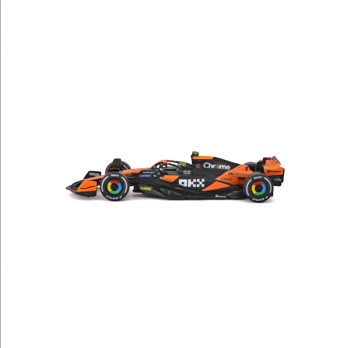 Bburago modely závodních vozů Formule 1 v měřítku1:43 z kolekce RACE jsou sbírkou krásného designu s vysokým důrazem na přesnost detailů. Formule ze stáje McLaren MCL38 (2024) s autentickými detaily závodního vozu a helmy jezdce. Modely jsou vyrobeny z litého kovu s plastovými detaily. Každý z modelů v klasickém závodním designu je umístěn v dekorativním akrylovém boxu. Díky dekorativnímu boxu je tento model skvělým sběratelským kouskem a dárkem pro každou příležitost. Nevhodné pro děti do 3 let. Rozměry balení: 6,7 x 14,7 x 7,5 cm. Věk: 14+