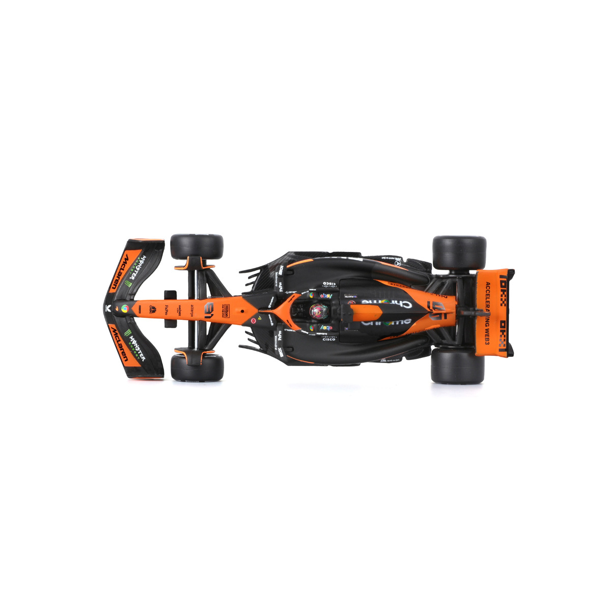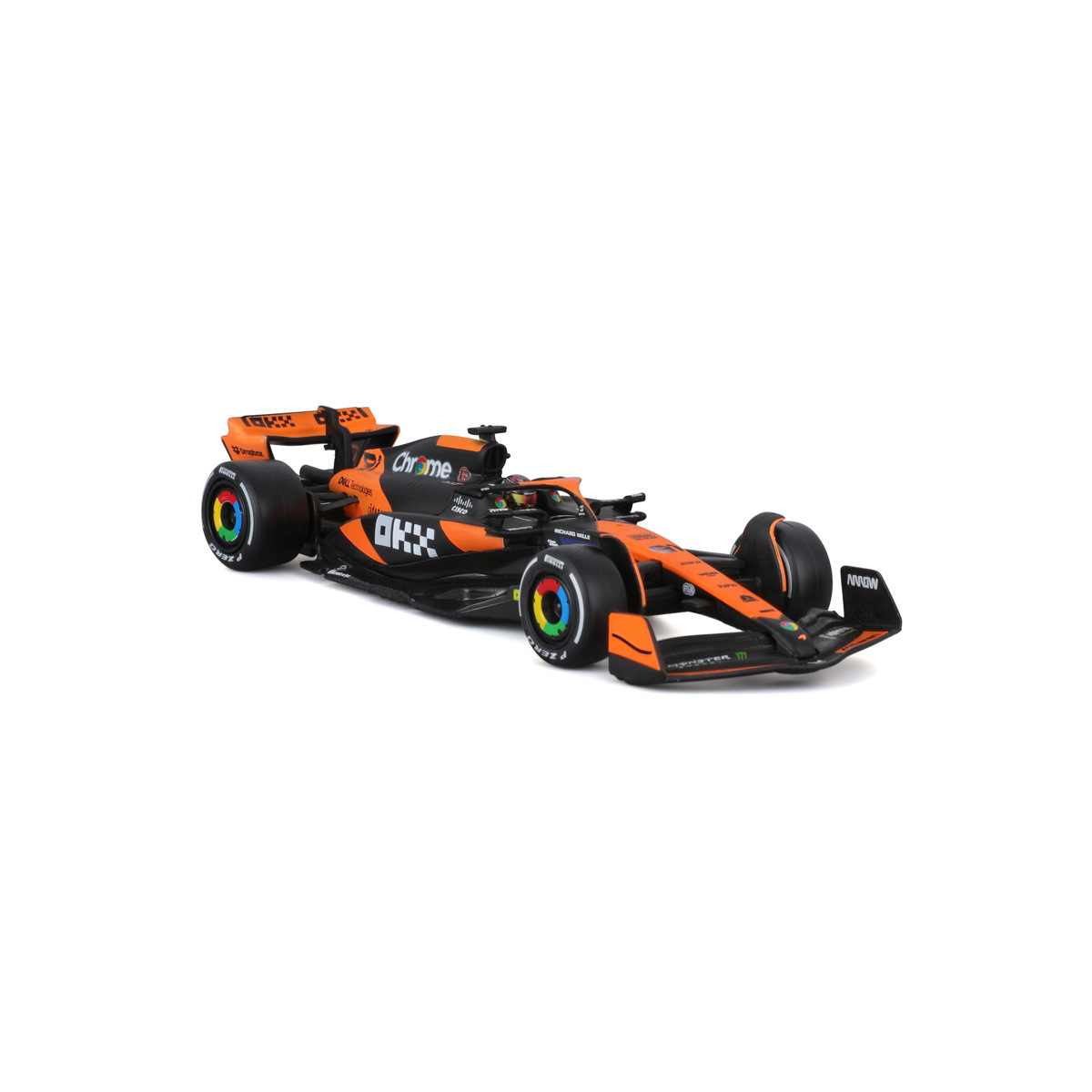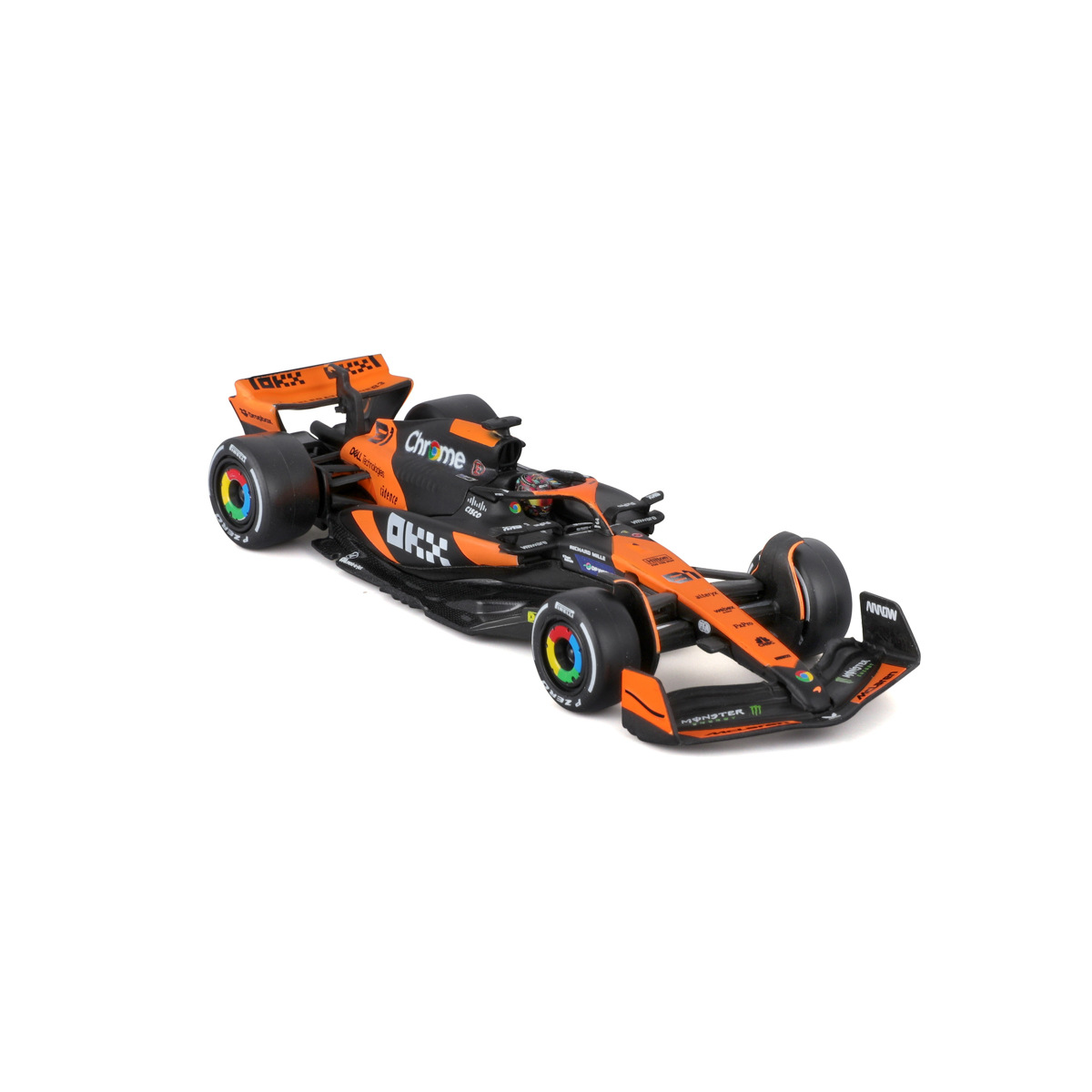 Bburago modely závodních vozů Formule 1 v měřítku1:43 z kolekce RACE jsou sbírkou krásného designu s vysokým důrazem na přesnost detailů. Formule ze stáje McLaren MCL38 (2024) s autentickými detaily závodního vozu a helmy jezdce. Modely jsou vyrobeny z litého kovu s plastovými detaily. Každý z modelů v klasickém závodním designu je umístěn v dekorativním akrylovém boxu. Díky dekorativnímu boxu je tento model skvělým sběratelským kouskem a dárkem pro každou příležitost. Nevhodné pro děti do 3 let. Rozměry balení: 6,7 x 14,7 x 7,5 cm. Věk: 14+
