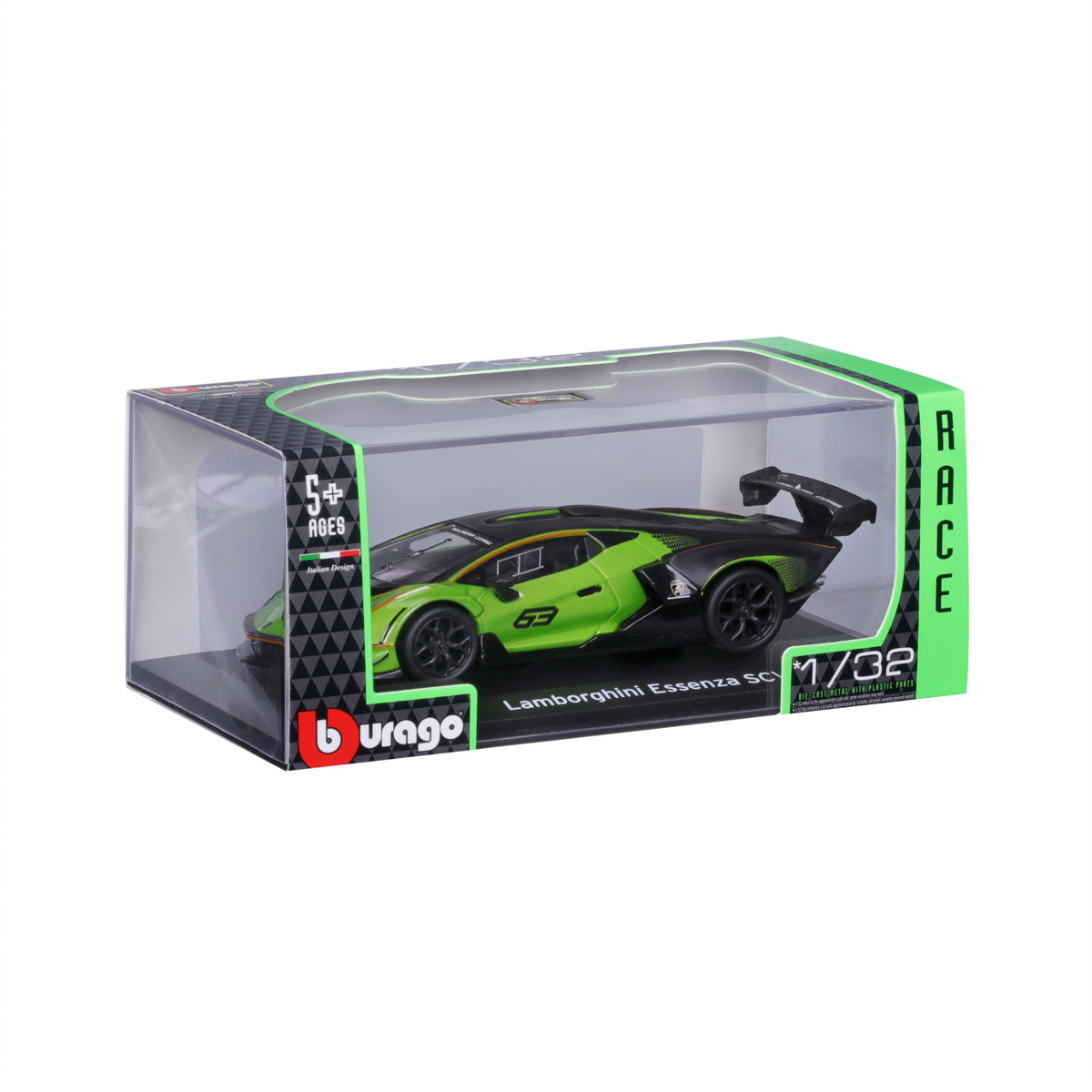 Modely závodních automobilů Bburago v měřítku1:32 z kolekce Race jsou sbírkou krásného designu závodních automobilů s vysokým důrazem na přesnost detailů. Modely jsou vyrobeny z litého kovu s plastovými detaily. Každý z modelů je v klasickém závodním designu a se závodním číslem. Baleno v krabičce. Nevhodné pro děti do 3 let. Rozměry balení: 7 x 16,7 x 9,5 cm. Věk: 3+