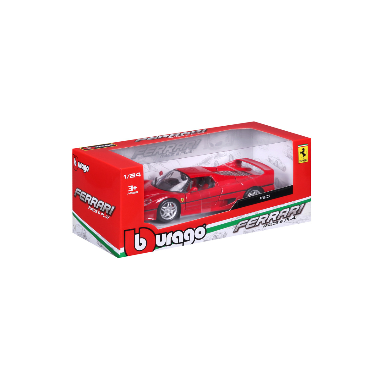 Modely automobilů Ferrari v měřítku 1:24 z kolekce RACE+PLAY jsou sbírkou krásného designu s vysokým důrazem na přesnost detailů. Modely jsou vyrobeny z litého kovu s plastovými detaily. Většina modelů z kolekce má otevírací dveře, kufr nebo kapotu. Některé z modelů mají pohyblivý volant. Baleno v krabičce. Nevhodné pro děti do 3 let. Rozměry balení: 10,3 x 25 x 12,6 cm. Věk: 3+