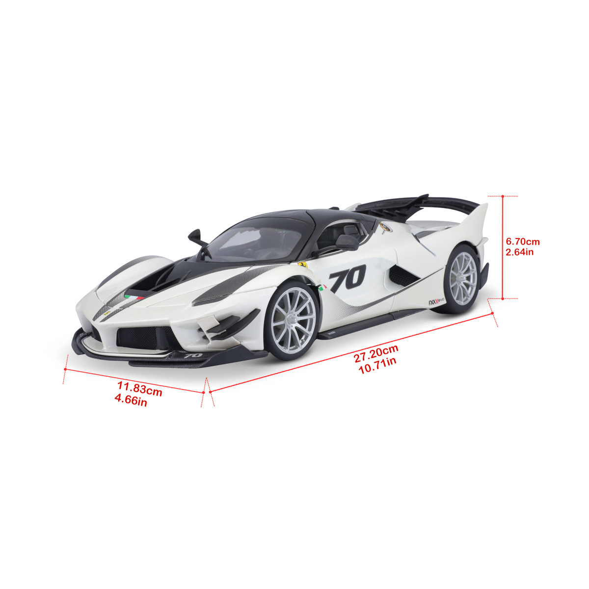 Modely automobilů Ferrari v měřítku 1:18 z kolekce RACE+PLAY jsou sbírkou krásného designu s vysokým důrazem na přesnost detailů. Detailní provedení motorových prostor, interiéru, kol a odznaků. Modely jsou vyrobeny z litého kovu s plastovými detaily. Většina modelů z kolekce má otevírací dveře, kufr nebo kapotu. Všechny modely v kolekci mají plně funkční řízení a zavěšení všech kol. Model je namontován na výstavním stojánku. Baleno v krabičce. Nevhodné pro děti do 3 let. Rozměry balení: 12,6 x 33,5 x 16,5 cm. Věk: 3+