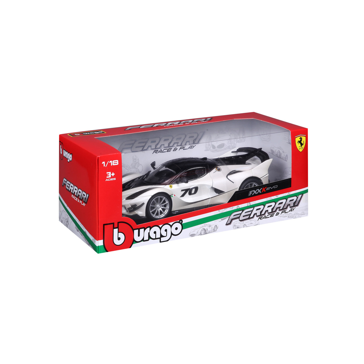 Bburago - RACE+PLAY, Ferrari FXX-K EVO, bílá-černá, 1:18