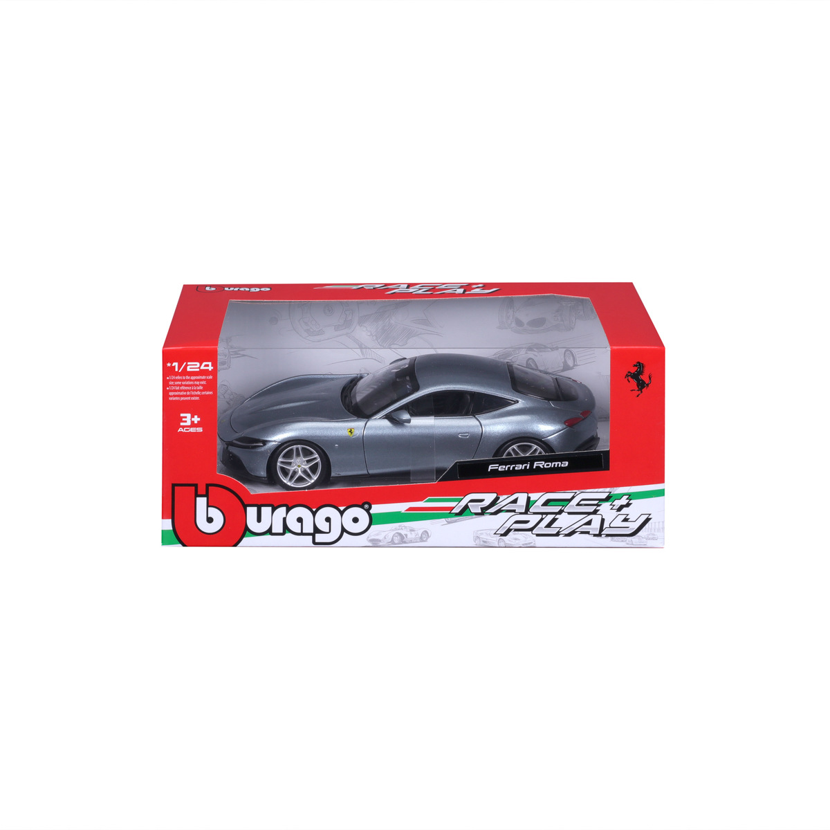 Modely automobilů Ferrari v měřítku 1:24 z kolekce RACE+PLAY jsou sbírkou krásného designu s vysokým důrazem na přesnost detailů. Modely jsou vyrobeny z litého kovu s plastovými detaily. Většina modelů z kolekce má otevírací dveře, kufr nebo kapotu. Některé z modelů mají pohyblivý volant. Baleno v krabičce. Nevhodné pro děti do 3 let. Rozměry balení: 10,3 x 25 x 12,6 cm. Věk: 3+