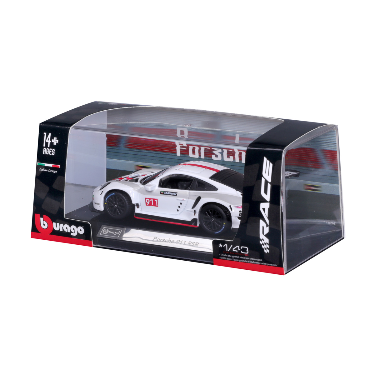 Modely závodních automobilů Bburago v měřítku1:24 z kolekce Race jsou sbírkou krásného designu závodních automobilů s vysokým důrazem na přesnost detailů. Modely jsou vyrobeny z litého kovu s plastovými detaily. Každý z modelů je v klasickém závodním designu se závodním číslem. Většina modelů z kolekce má otevírací dveře. Baleno v krabičce. Nevhodné pro děti do 3 let. Rozměry balení: 10,3 x 24,5 x 12,6 cm. Věk: 3+