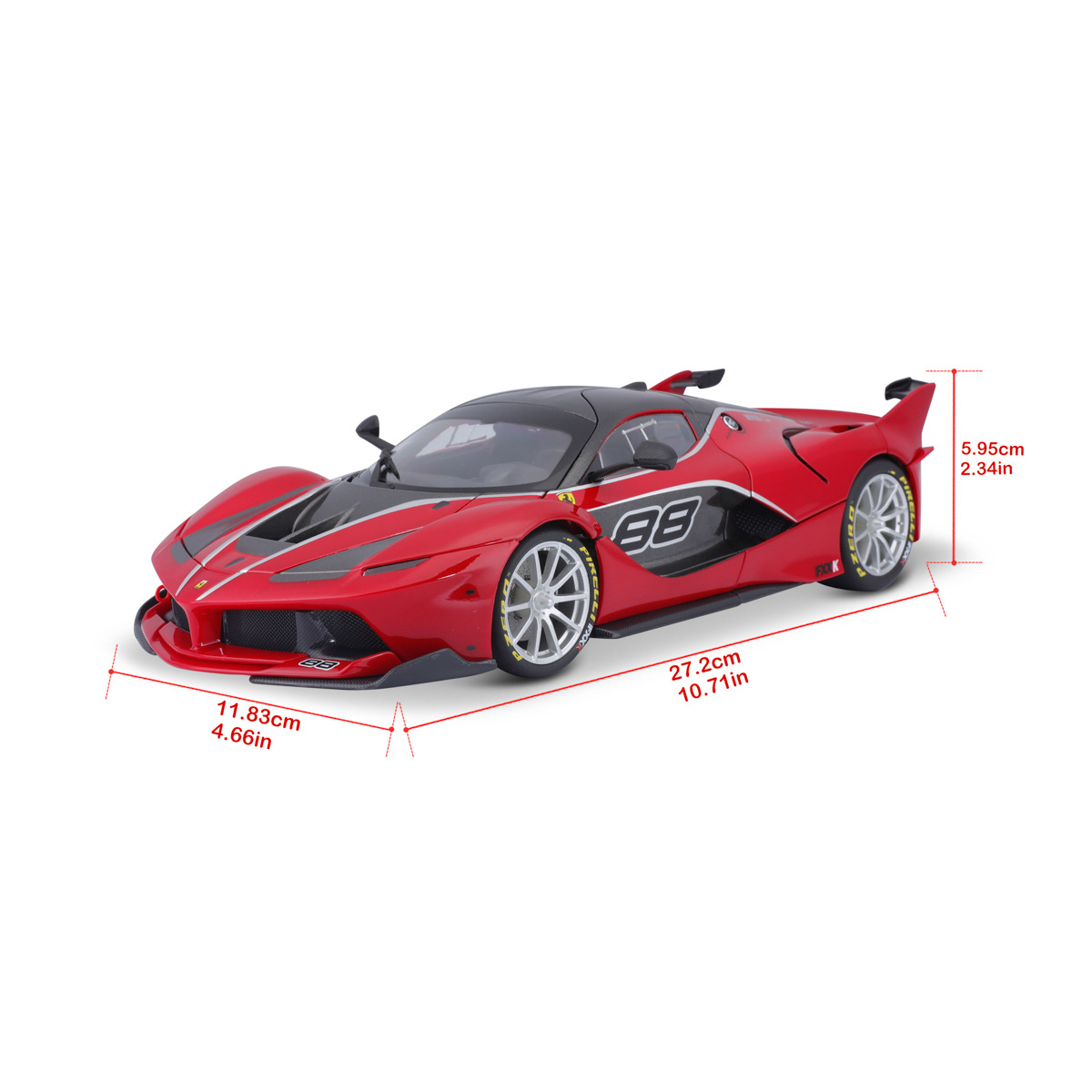 Modely automobilů Ferrari v měřítku 1:18 z kolekce RACE+PLAY jsou sbírkou krásného designu s vysokým důrazem na přesnost detailů. Detailní provedení motorových prostor, interiéru, kol a odznaků. Modely jsou vyrobeny z litého kovu s plastovými detaily. Většina modelů z kolekce má otevírací dveře, kufr nebo kapotu. Všechny modely v kolekci mají plně funkční řízení a zavěšení všech kol. Model je namontován na výstavním stojánku. Baleno v krabičce. Nevhodné pro děti do 3 let. Rozměry balení: 12,6 x 33,5 x 16,5 cm. Věk: 3+