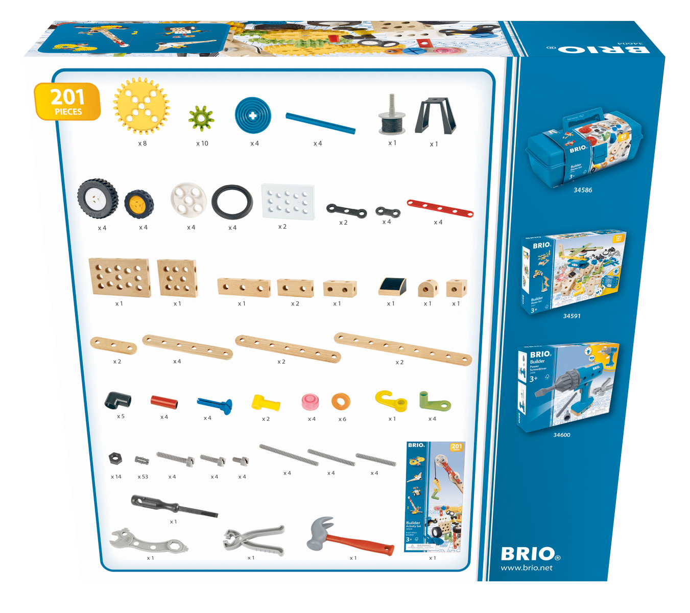 Oživte svoji představivost s kreativní sadou Brio Builder. Tato 271dílná stavebnice je skvělá pro mladé inženýry a obsahuje vše, co potřebují, aby proměnili nápady ve skutečnost. Detailní nástroje, jako jsou šroubováky, kladiva a klíče, spolu se složitými součástmi, jako jsou ozubená kola, převody a další, lze použít k vytvoření jakýchkoli výtvorů, které je napadnou. Tento otevřený přístup ke stavební hře poskytuje dětem zábavný způsob experimentování a procvičování koordinace ruka-oko. Stavebnice přináší dětem spoustu zábavy. Podporuje fantazii a jemnou motoriku. Certifikace FSC®: FSC 100 %. CE certifikace: Ano. Rozměry balení: 30 x 39 x 8 cm. Věk: 3+