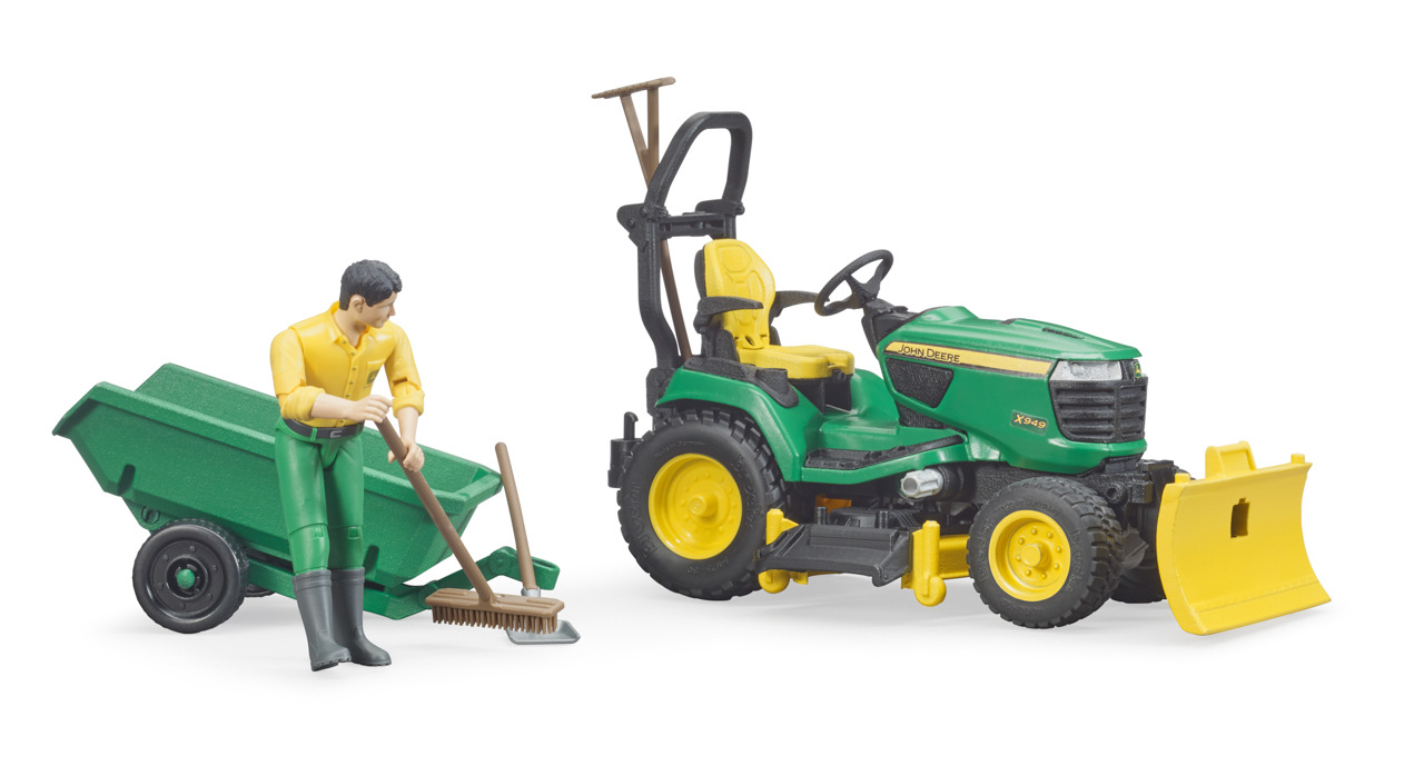 Trávníkové traktory John Deere vyvinuté pro pohodlí a výkon jsou nejlepší, pokud jde o péči o trávník. John Deere X949 vyniká svým výjimečným provozním a jízdním komfortem. Tento travní traktor je nejnovějším přírůstkem do široké nabídky užitkových a komunálních vozidel BRUDER. Model je vysoce kvalitní. Sekačka je výškově nastavitelná a odnímatelná. Tato sada obsahuje sklápěcí přívěs pro přepravu nářadí a zahradního odpadu, který lze rychle a snadno připojit. Přední radlici lze odpojit. Pro ještě větší zábavu obsahuje sada zahradníka. Měřítko 1:16. Hračka je vhodná pro hru uvnitř i venku. Vyrobeno z vysoce kvalitních plastů. Rozměr balení: 17,5 x 19 x 30 cm. Doporučený věk: 4+