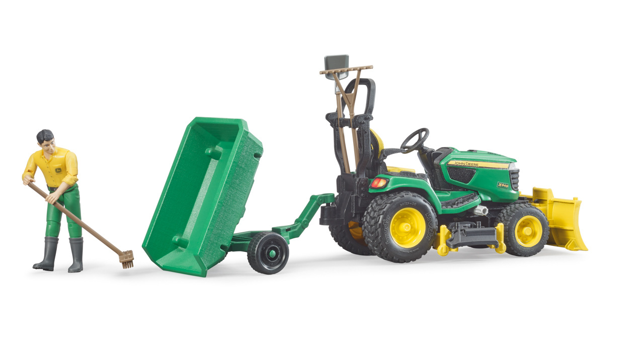 Bruder Úžitkové vozidlá - bworld traktor John Deere s prívesom a záhradníkom