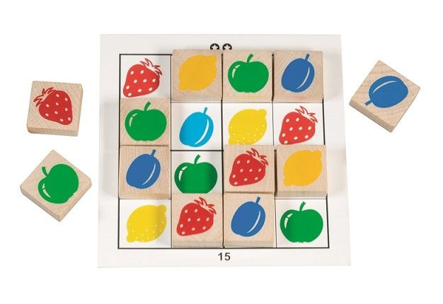 Úkolem je doplnit prázdná políčka v mřížce 4×4 tak, aby se stejně jako u klasického sudoku (s čísly) žádné obrázky neopakovaly v řádku, sloupci ani v jednotlivých čtvercích.