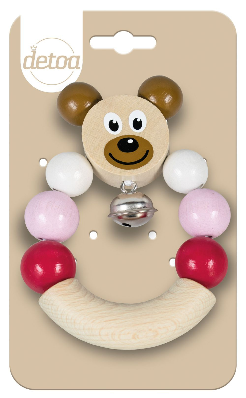 Detoa Chrastítko/Hrkálka medveď ružový drevo 7x9cm na karte 6m+