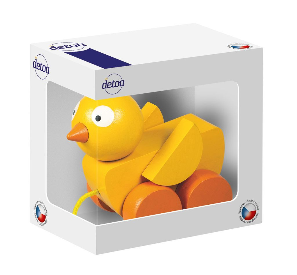Tahací hračka kuře.Kuře doprovází děti při jejich prvních krůčcích.Rozměry výrobku jsou 95x64x85 mm.