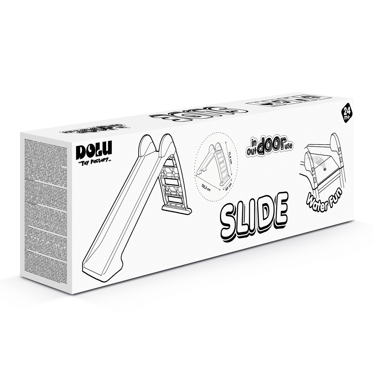 Zábavná dětská skluzavka. Vyniká výbornou stabilitou pro bezpečnost vašich dětí. Překvapí vás nejen snadná montáž, ale také jednoduché a rychlé skládání. Možnost připojení na zahradní hadici pro ještě více zábavy. Vhodné pro vnitřní i venkovní použití. Maximální nosnost: 25kg. Délka skluzu: 950mm. Zavěšení - maximální výška podesty - 610 mm výška sedadla - 720 mm výška výrobku. Doporučený věk: 2y+. Rozměr výrobku: 72 x 133 x 45 cm. Rozměr balení: 35 x 115,5 x 15 cm.