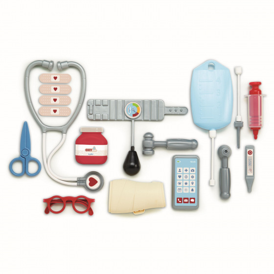 Lékařský kufřík s nezbytným příslušenstvím pro každého lékaře. Obsahuje 17 ks příslušenství - stetoskop, brýle, telefon, tlakoměr, otoskop, reflexní kladívko, lékovou lahvičku, teploměr, infúzní vak, injekční stříkačku, sádrovou ortézu, nůžky a 4 náplasti. Rozměry kufříku: 25,5 x 18 x 10,5 cm.