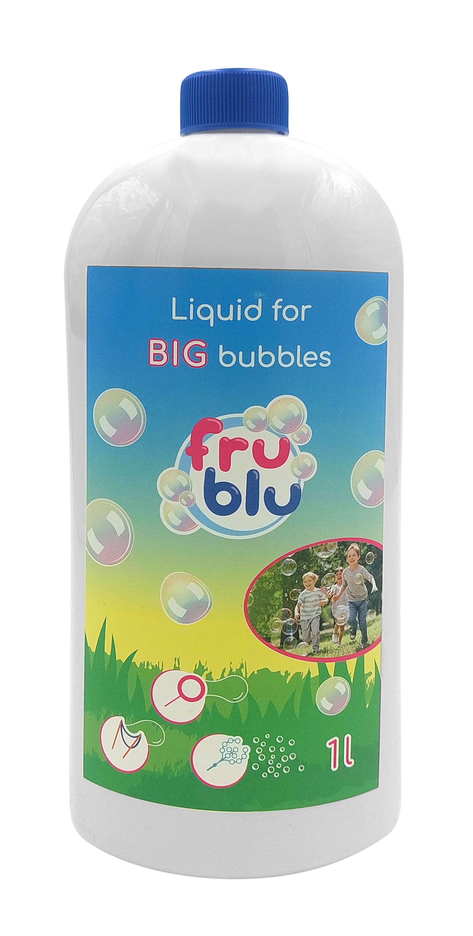 „Pohodlná rukoväť potiahnutá vysoko kvalitným plastom. Rovnako obruč je zo špeciálneho materiálu, ktorý veľmi dobre udrží tekutinu. Bubliny FRU BLU dosahujú obrovské rozmery a majú neskutočné tvary. September všetkými farby dúhy. Bubliny FRU BLU vznikajú vďaka špeciálnej tekutine, ktorá je produkovaná v EÚ. Sú trvanlivé a len tak neprasknú."