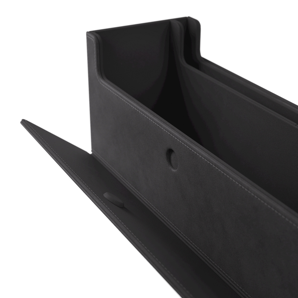 Parametry: • Rozměry produktu (Š x H x V): 409 × 105 × 111 mm • Rozměry vnitřních přihrádek (Š x H x V): • Hlavní přihrádka: 287 × 68 × 101 mm • Horní přihrádka: 106 × 80 × 26 mm • Šuplíky: 96 × 69 × 27 mm • Materiál (standardní verze): Povrch Nexofyber + vnitřní výstelka z mikrovlákna • Materiál (Black & EXCLUSIVE LINE): Povrch Nexofyber+ + vnitřní výstelka z mikrovlákna