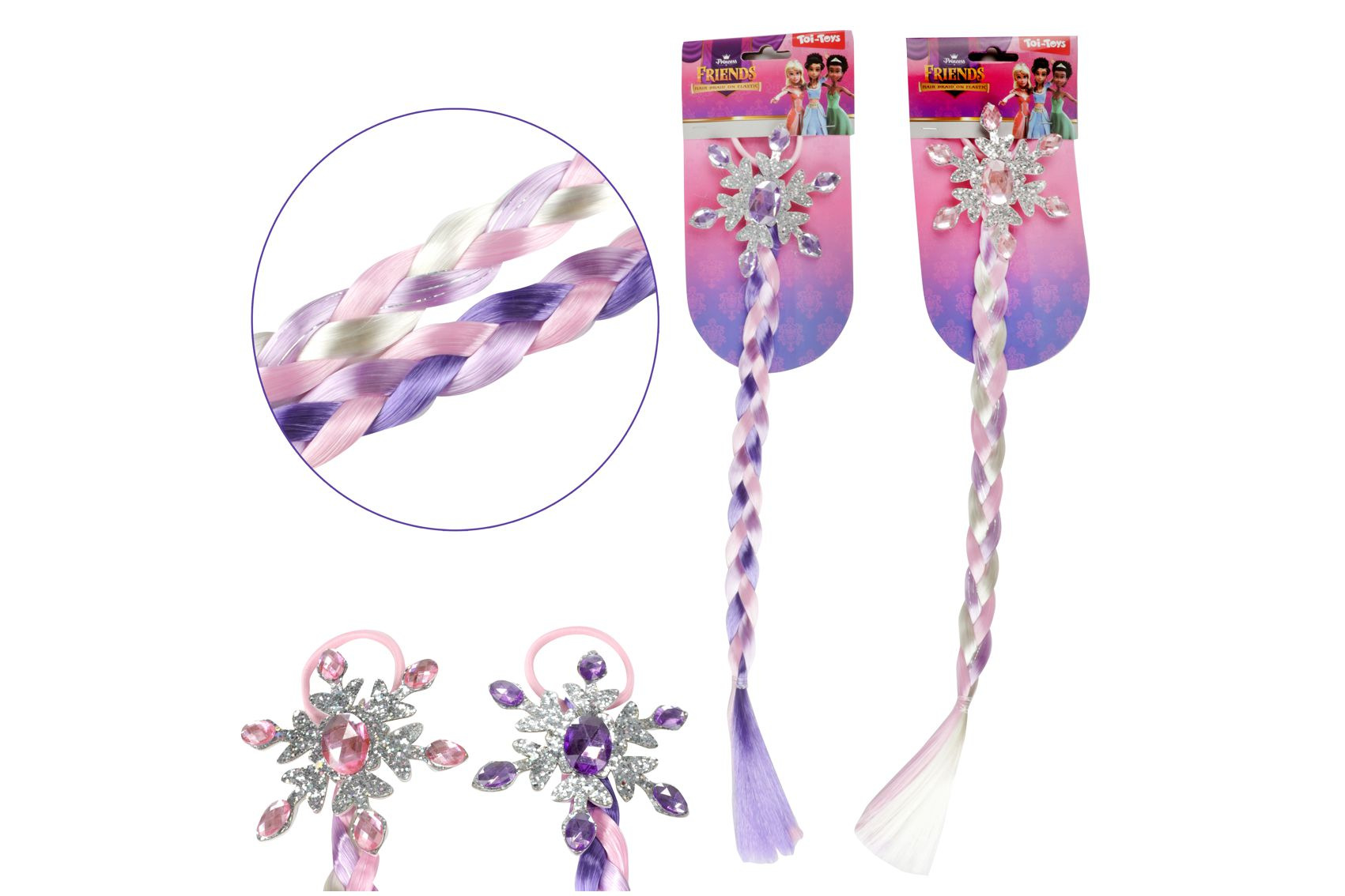 Popis Teddies Gumička do vlasov s ozdobou s farebným vrkočom 2 farby v sáčku 11x46x2cm