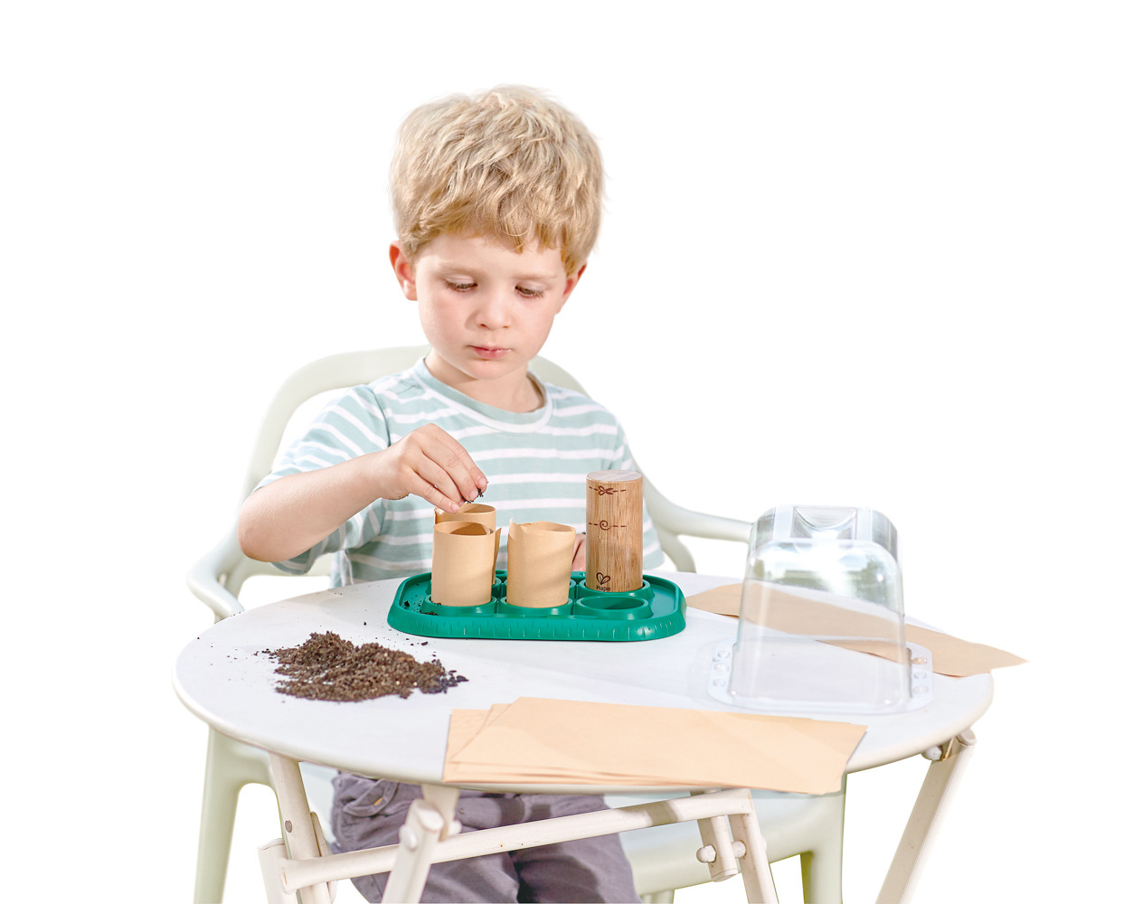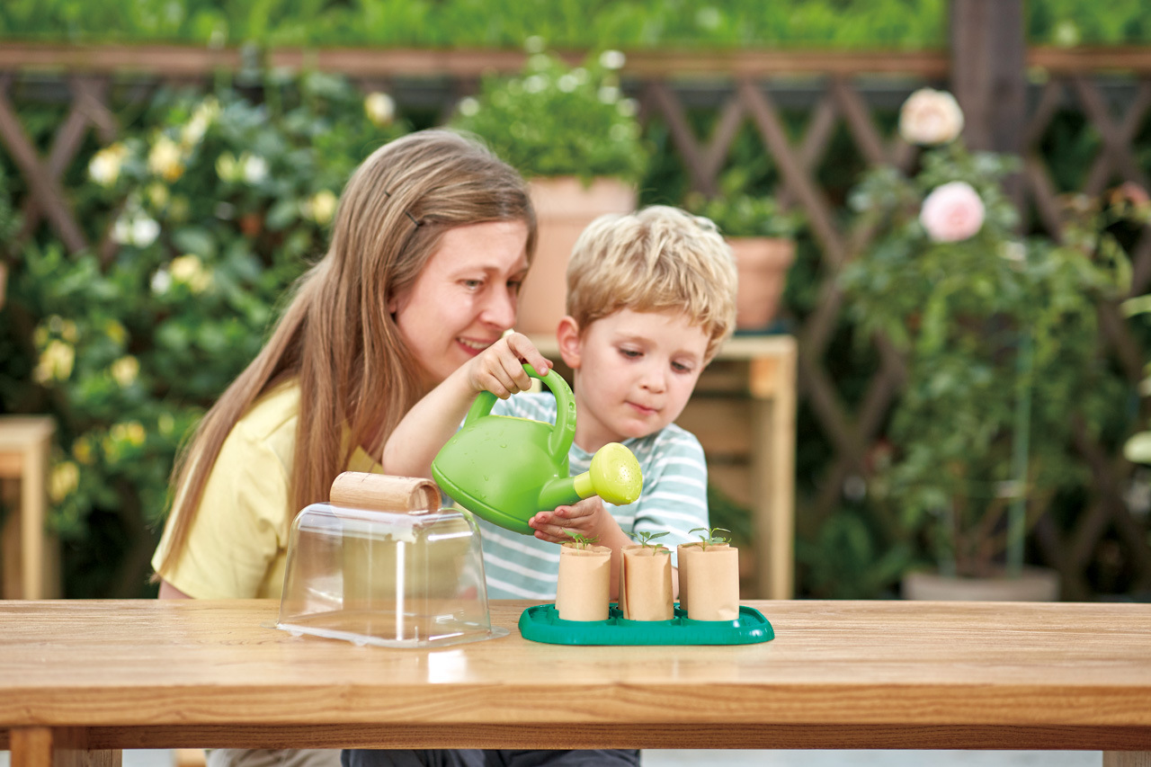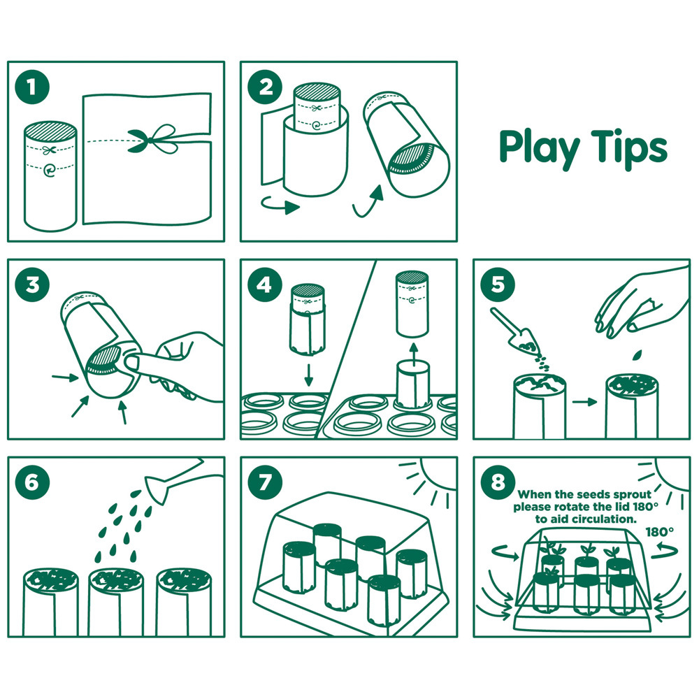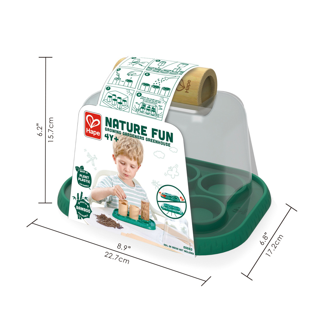 Táto nádherná skleníková hracia sada Bamboo pomáha deťom spoznávať prírodu a pestovať si vlastné rastliny. Zasaďte semená podľa vášho výberu do skleníka a starajte sa o ne, kým nebudú pripravené na presadenie von. Vaše dieťa môže pomocou tejto sady na vlastnej koži zistiť, aká zábavná príroda môže byť. Pomocou priloženej bambusovej formy vytvorte malé, rozložiteľné, papierové vázy na všetky semená, ktoré chcete pestovať, a potom sa o ne starajte, kým nebudú pripravené na presadenie von. Priehľadný kryt pomáha udržiavať vaše semená v teple a na svetle. Vaše dieťa sa na základe pokusov a omylov dozvie viac o tom, ako svetlo, voda a teplo spôsobujú, že rastliny rastú. Sledujte, ako vďaka tomuto procesu rastie ich láska k prírode a pocit zodpovednosti. Súprava je vhodná pre deti od 4 rokov. Táto sada je úplne ekologická. Je vyrobená z udržateľného bambusu, bioplastov a všetky potrebné materiály sa prirodzene rýchlo rozkladajú. Rozmer balenia: 22,7 x 15,7 x 17,2 cm. Video: https: // www.youtube.com / watch?v=74faBtIXyG