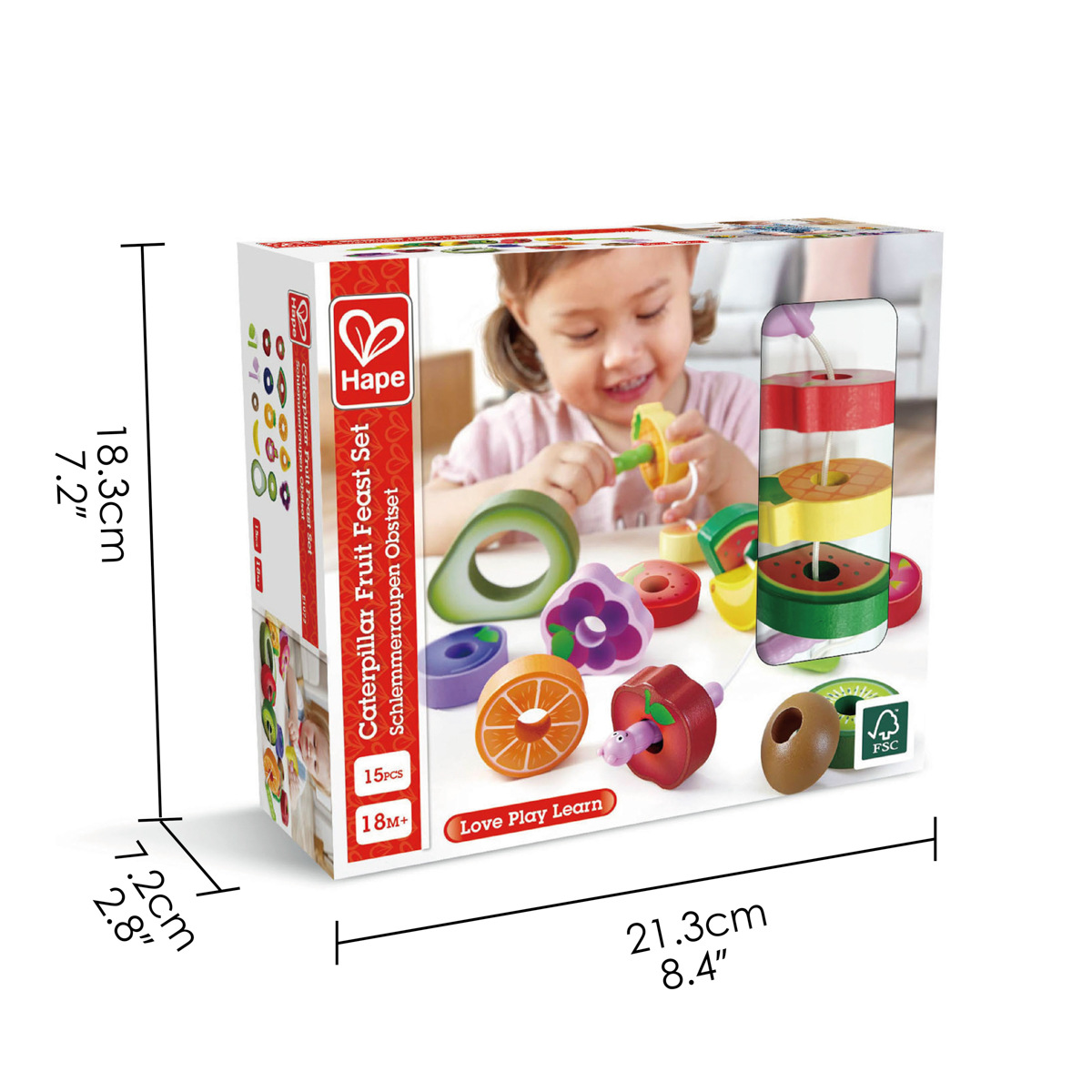 Pomozte těmto hladovým housenkám získat spoustu zdravých svačin s touto roztomilou sadou! Obsahuje dvě housenky na provázcích a 13 kousků ovoce, které mohou okusovat! Balení: 18x7x22cm. Věk: 18m+