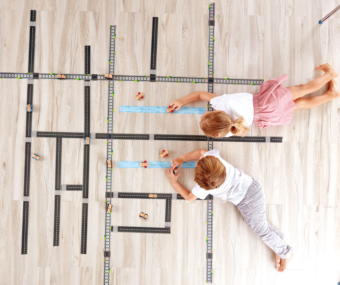 Vytvor si svoju vlastnú trať pre mašinku. Páska sa ľahko nalepí na väčšinu povrchov a taktiež sa ľahko odlepuje. Počet dielikov: 2. Rozmer balenia: 5,1 x 7,5 x 4,1 cm. Vek: 2+