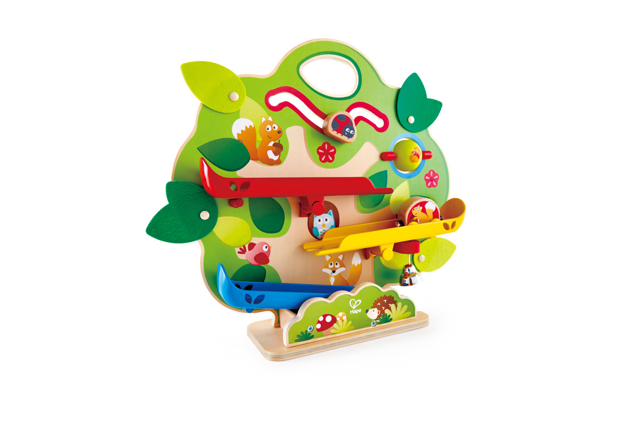 Umístěte veverku s oříškem na vrchol stromu a sledujte její jízdu. Cestou dolů zdolává veverka různé překážky a rozezvoní zvoneček. Prozkoumejte i další zábavné funkce veverčina stromu. Vyrobeno z kvalitního a odolného materiálu. Počet dílků: 5. Rozměr: 39 x 37 x 11 cm. Věk: 18m+
