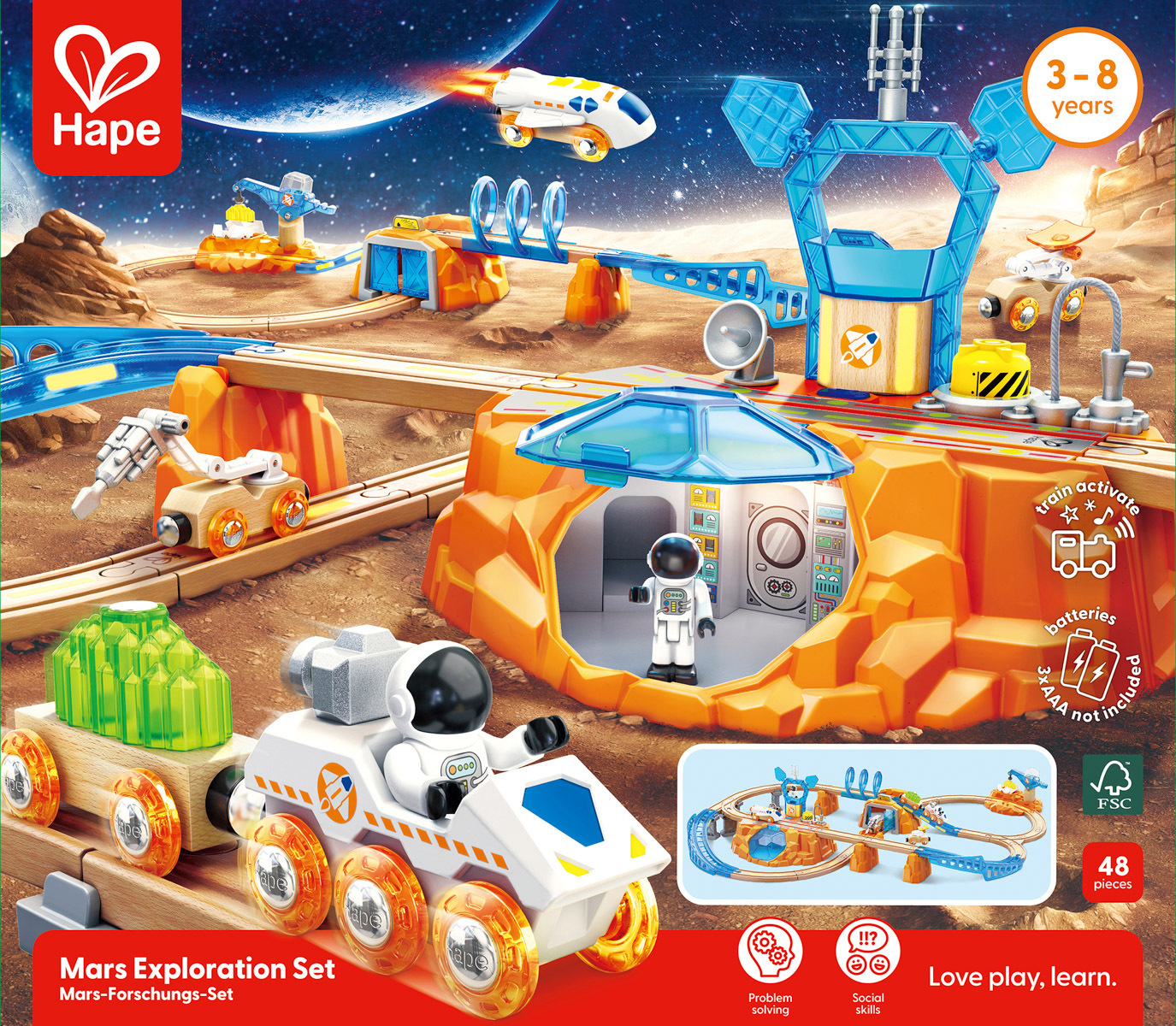 PorovnaťTřípatrová vláčkodráha Grand City s horských vlakem na setrvačník. Ve městě naleznete letiště, přístav, zábavní park, policejní stanici, staveniště, hasičskou stanici a pláž. Sada obsahuje třípatrovou herní základnu, troje schody, jedno letadlo, jeden výtah, jeden nákladní automobil, tři vlakové vagony, jednu policejní stanici, plastové koleje zakřivené a stoupací, jeden otočný disk pro přepravu zavazadel, čtyři figurky, jednu zdvihací bránu, čtyři úseky silnice, jednu strážní věž, jednu skříňku na nářadí se čtyřmi pracovními nástroji, jeden jeřáb, tři pilíře, jeden strom, dvě brány a jednu dopravní značku. Hračka povzbuzuje k vyprávění příběhů, podporuje kreativní hru a pomáhá při rozvoji jemné motoriky. Rozměr: 114,5 x 63,2 x 65,4 cm. Rozměr balení: 114,5 x 65,4 x 63,2 cm. Baterie: 2xLR44 jsou součástí balení. Věk: 3+