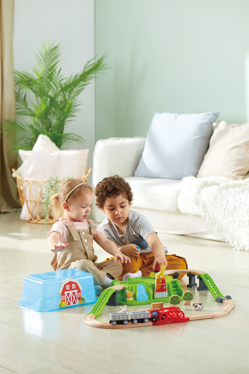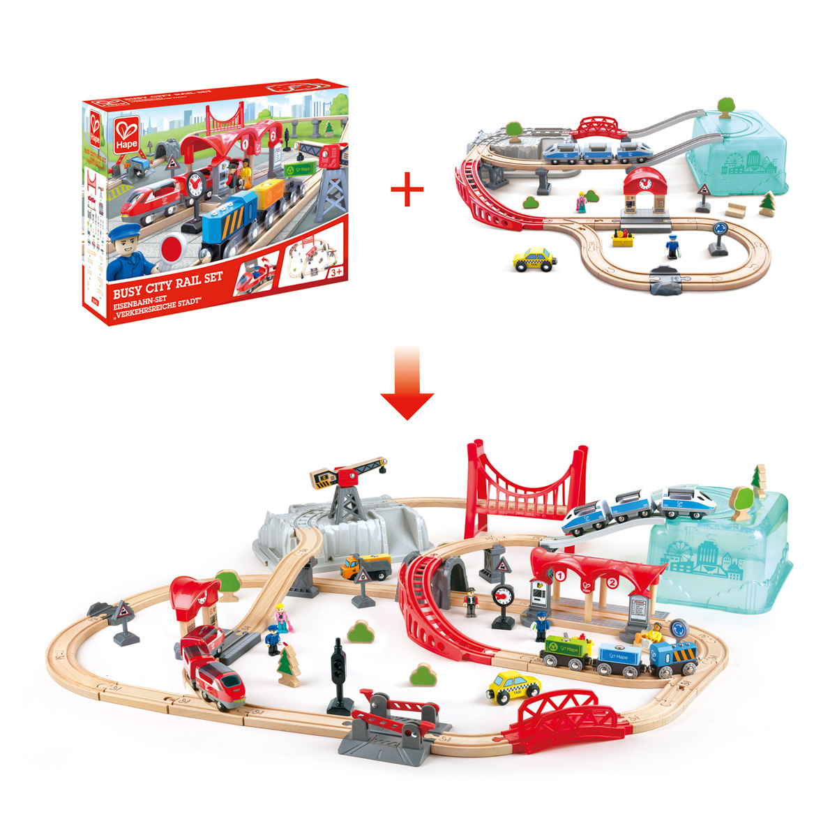 S touto dvojpodlažnou vláčkodráhou si môžete vytvoriť vlastný Hape svet! Postavte kompletnú železnicu s koľajami, mostmi a stanicami. Akonáhle bude dráha hotová, vezmite vlak na testovaciu jazdu po okruhu. Vláčikodráha obsahuje bohaté príslušenstvo (64 ks) a rozvíja detskú fantáziu a kreativitu. Vyrobené z kvalitného a odolného materiálu. Veková kategória: 3+ Veľkosť balenia: 48 x 15 x 42 cm Veľkosť vláčikodráhy: 85 x 70 x 20 cm