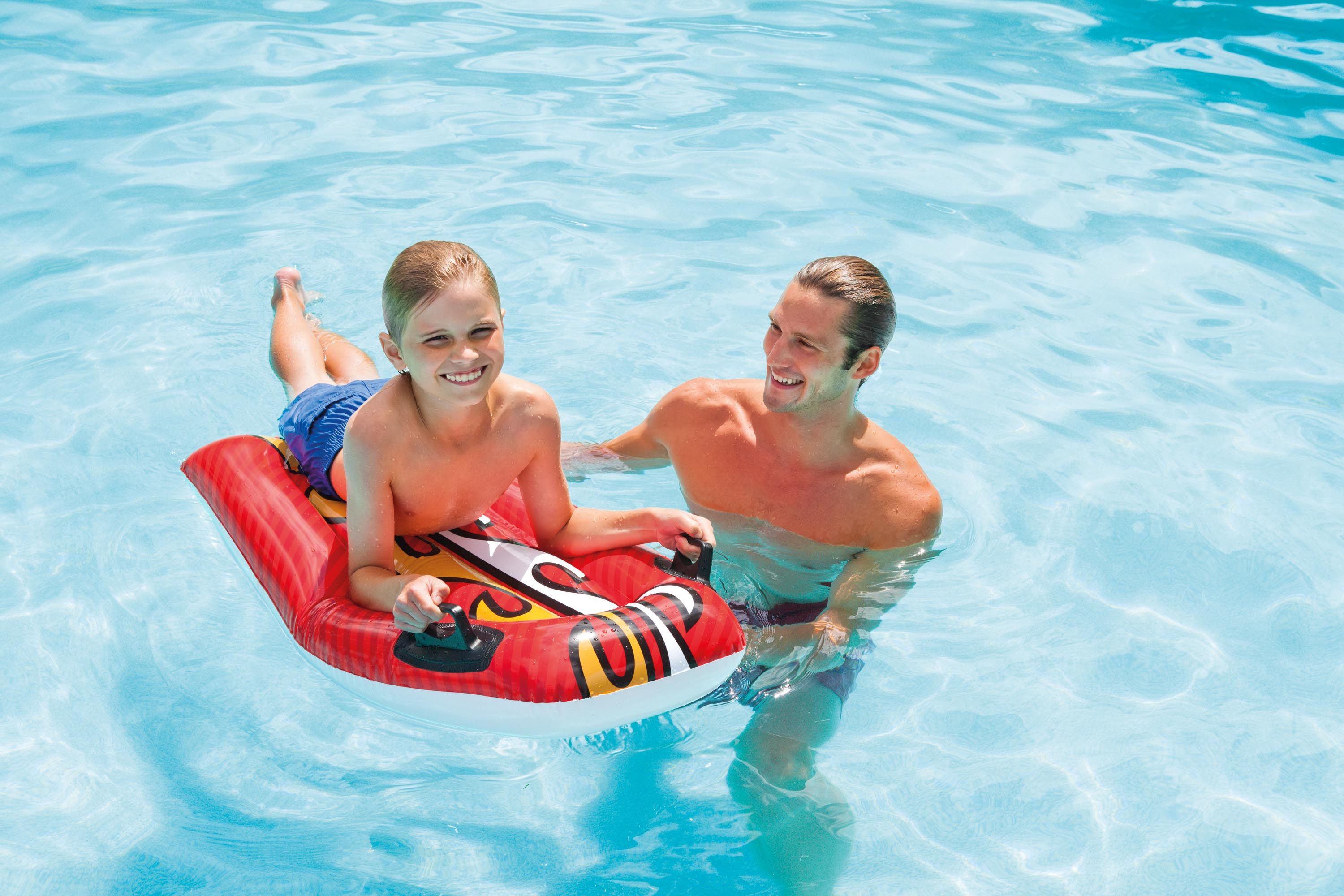Plovací lehátko do vody ve dvou barevných provedeních od výrobce Intex s dvěma úchyty pro zvýšenou stabilitu. Produkt obsahuje dvě vzduchové komory. Samozřejmou součástí balení je i malá opravná sada. Výrobek splňuje přísné bezpečnostní normy kladené na dětské výrobky do vody. Rozměry: 112 x 62 cm. Materiál: vinyl o tloušťce 0,25 mm. Nosnost: 80 kg. Vhodné pro děti od 6 let.