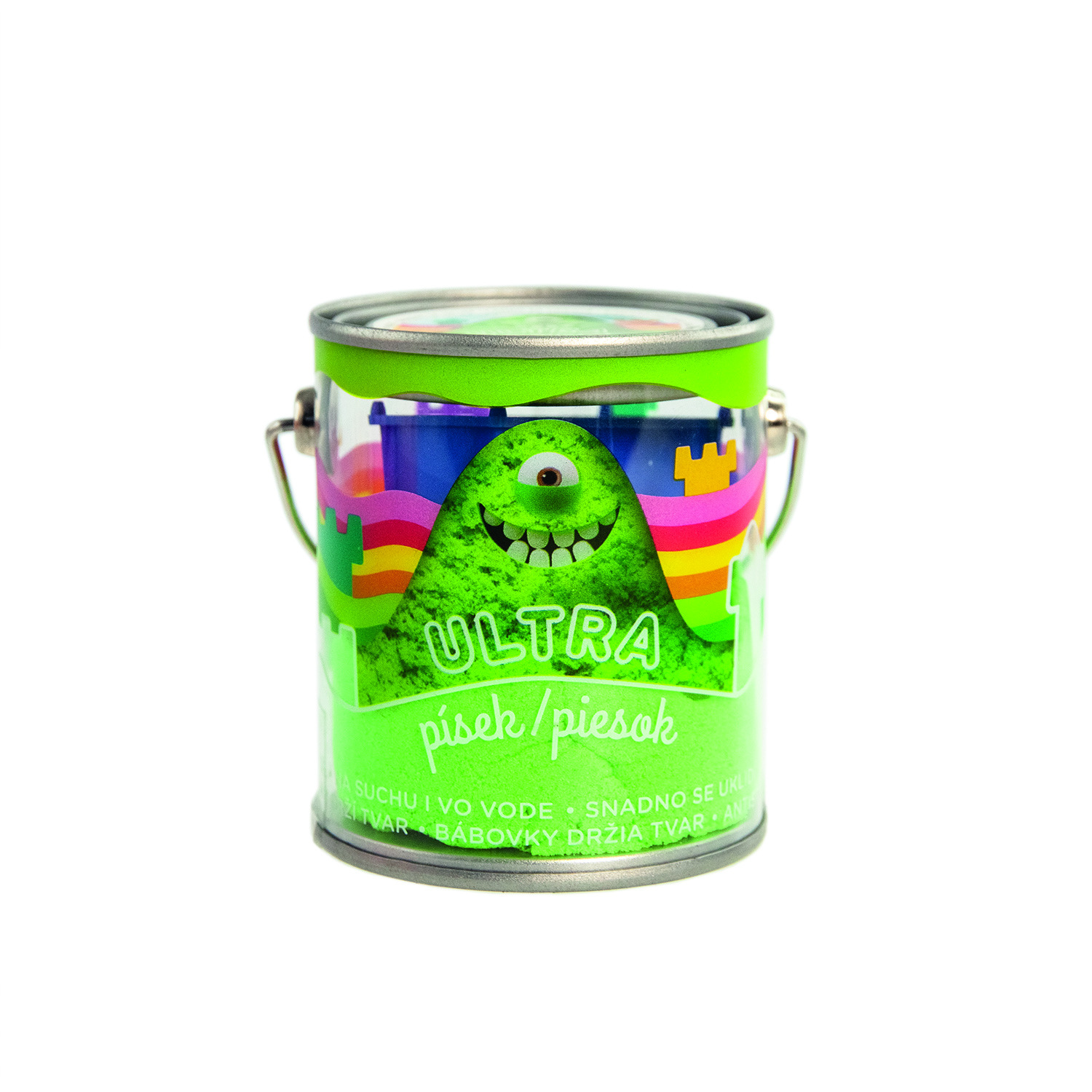 Kineticky ULTRA PÍSEK v balení 120g s 1 malou formičkou a v assortu 6 barev. Skvělě se tvaruje, nešpiní, snadno se uklidí. Bábovky drží tvar. Můžete stavět i pod vodou. Díky své velmi hebké konzistenci se dá použít i jako skvělá antistresová pomůcka. Pro děti od 3 let. Rozměry výrobku 6,5 x 7,5 x 6,5 cm