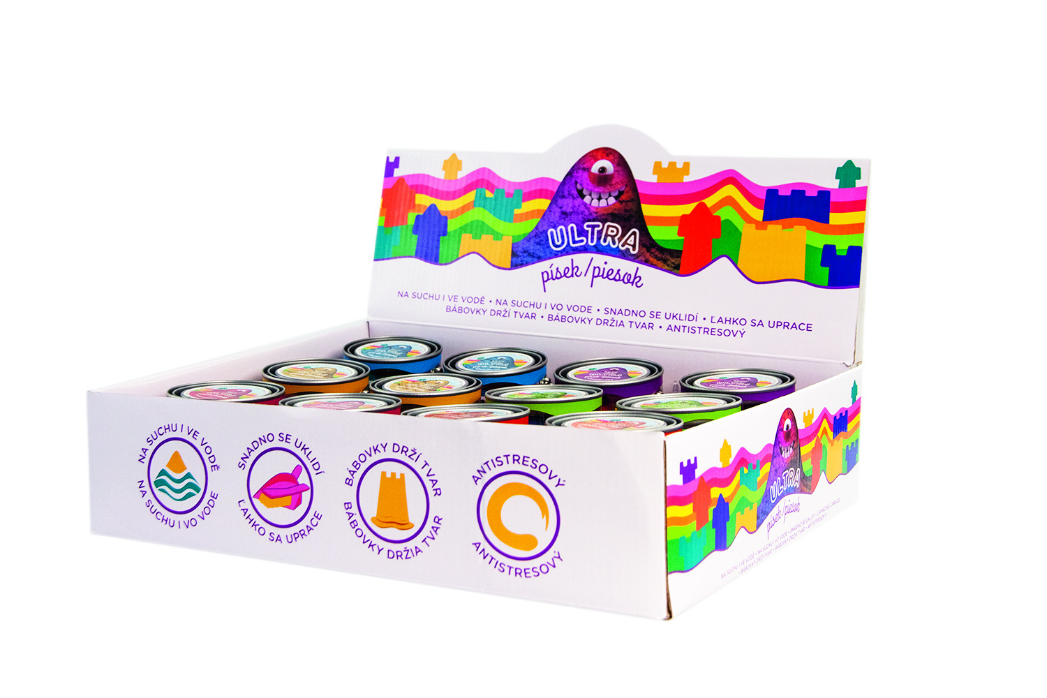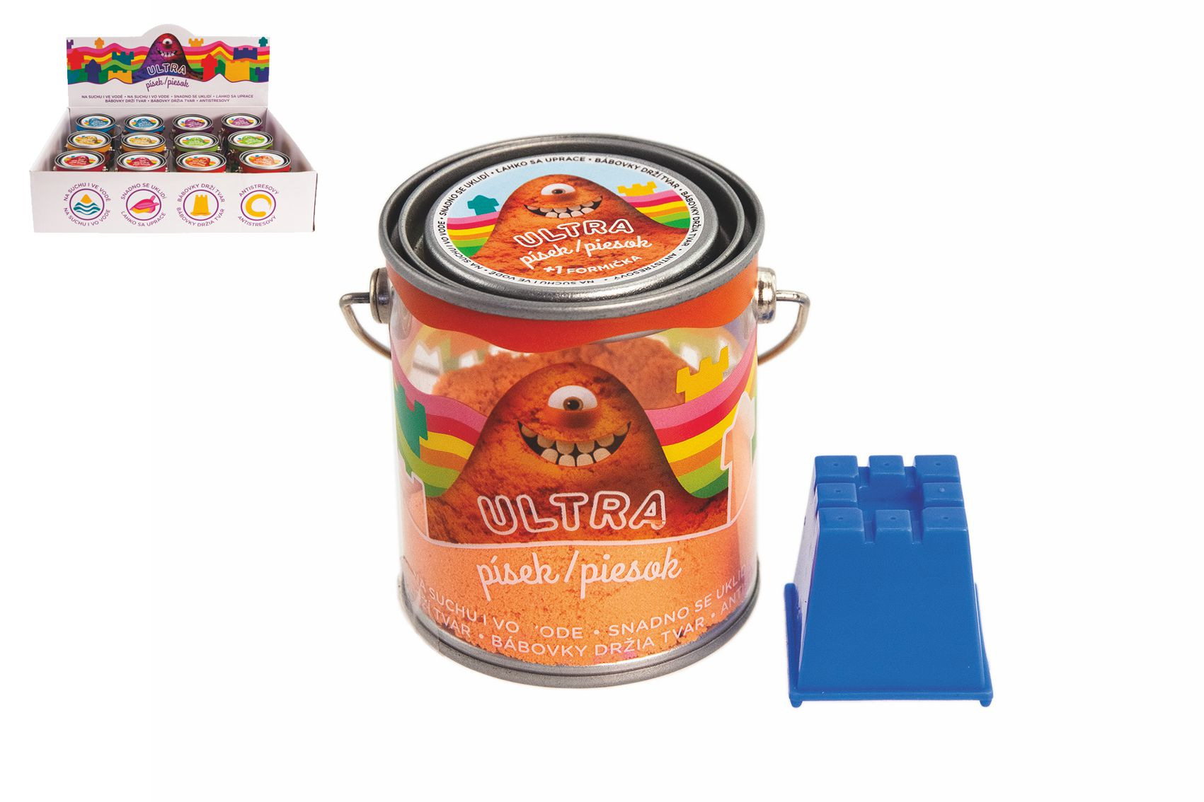 Popis Kúzelný Ultra piesok s formičkou mix druhov v plechovke 6,5x7,5cm 12ks v boxe