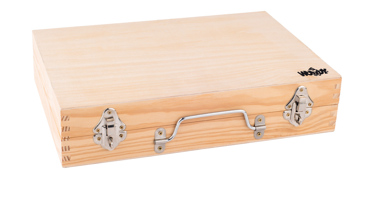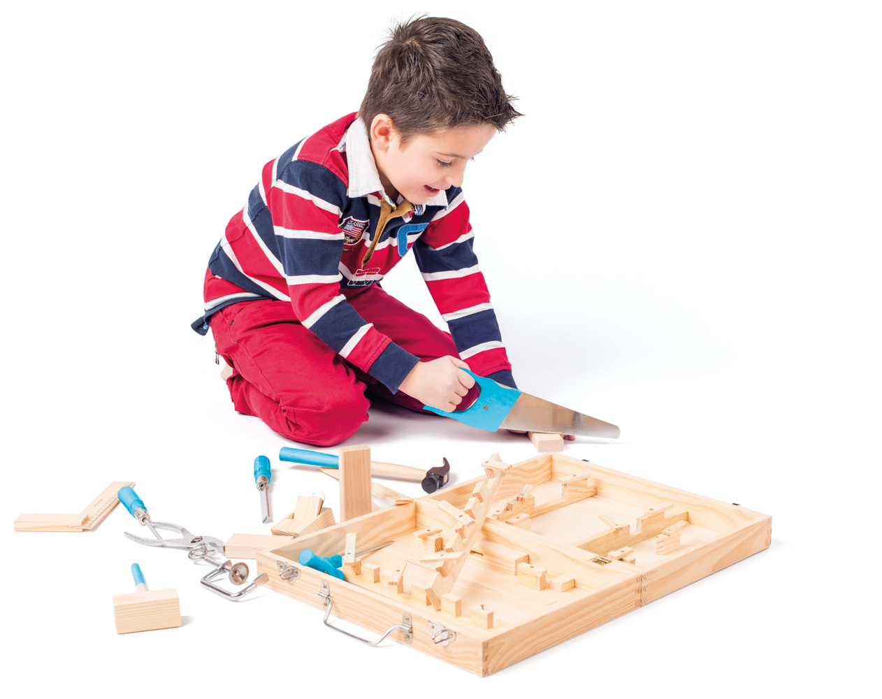 Kovové náradie je reálnou kópiou skutočného náradia pre dospelých. Praktický drevený kufrík s pántmi, v ktorom je náradie umiestnené, je vybavený dvoma kovovými prackami a kovovým uchom pre možnosť prenášania. Vo vnútri kufríka sú nainštalované západky a špeciálne otvory, ktoré zabezpečia jednotlivé kusy náradia tak, aby pri manipulácii nevypadli. Sada obsahuje 16 ks náradia. | Vek: 5+ | Rozmer otvoreného kufríka: 45 x 3,5 x 32 cm