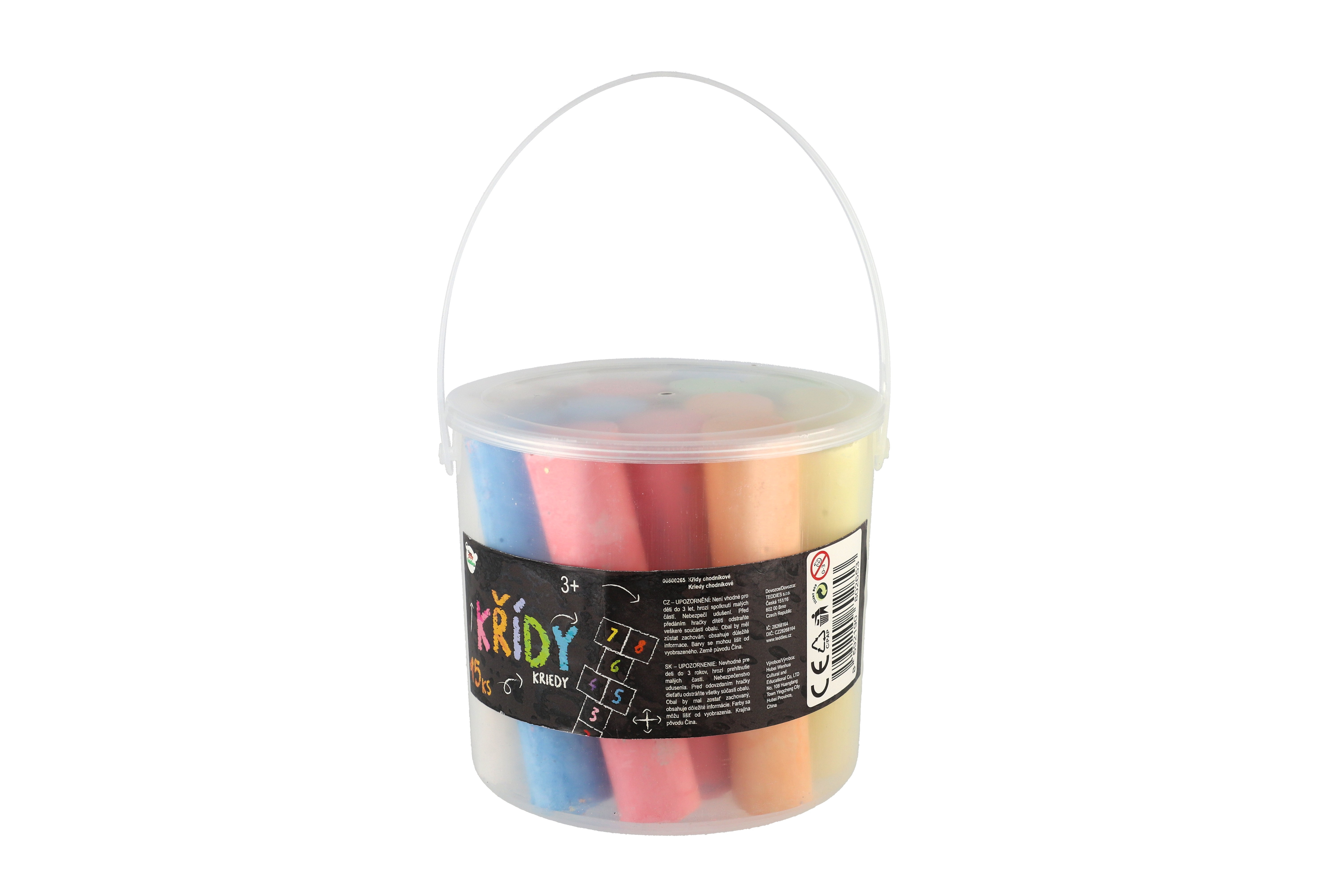 Balení barevných kříd v praktickém kyblíku. Obsahuje 15ks chodníkových kříd. Vhodné k malování na tabuli, dřevo, ale také na asfalt. Kreslení rozvíjí u dětí kreativitu, fantazii, šikovnost, zručnost, jemnou motoriku a další. Rozměry balení 12 x 11 x 12 cm Vhodné pro děti od 3 let
