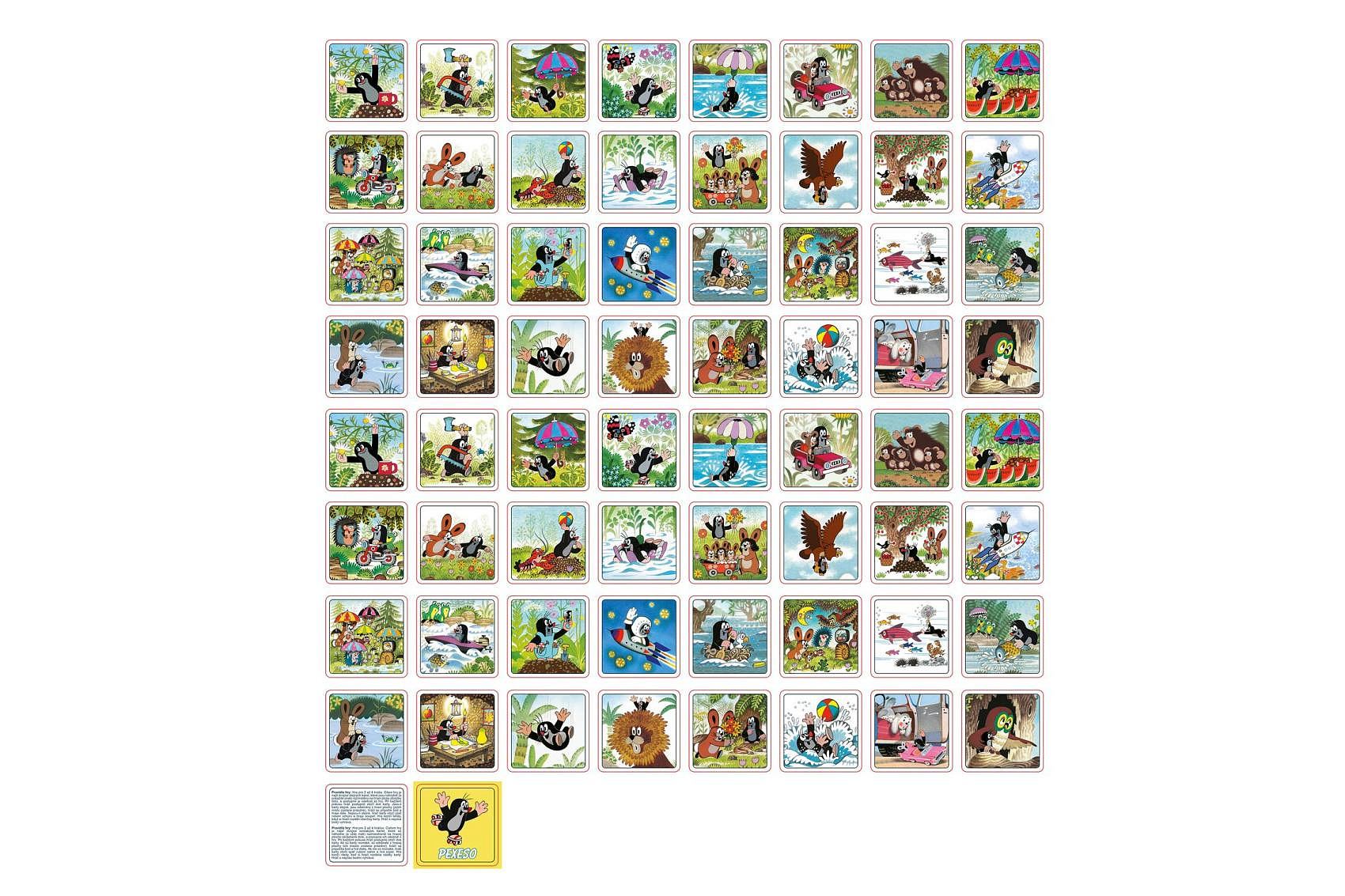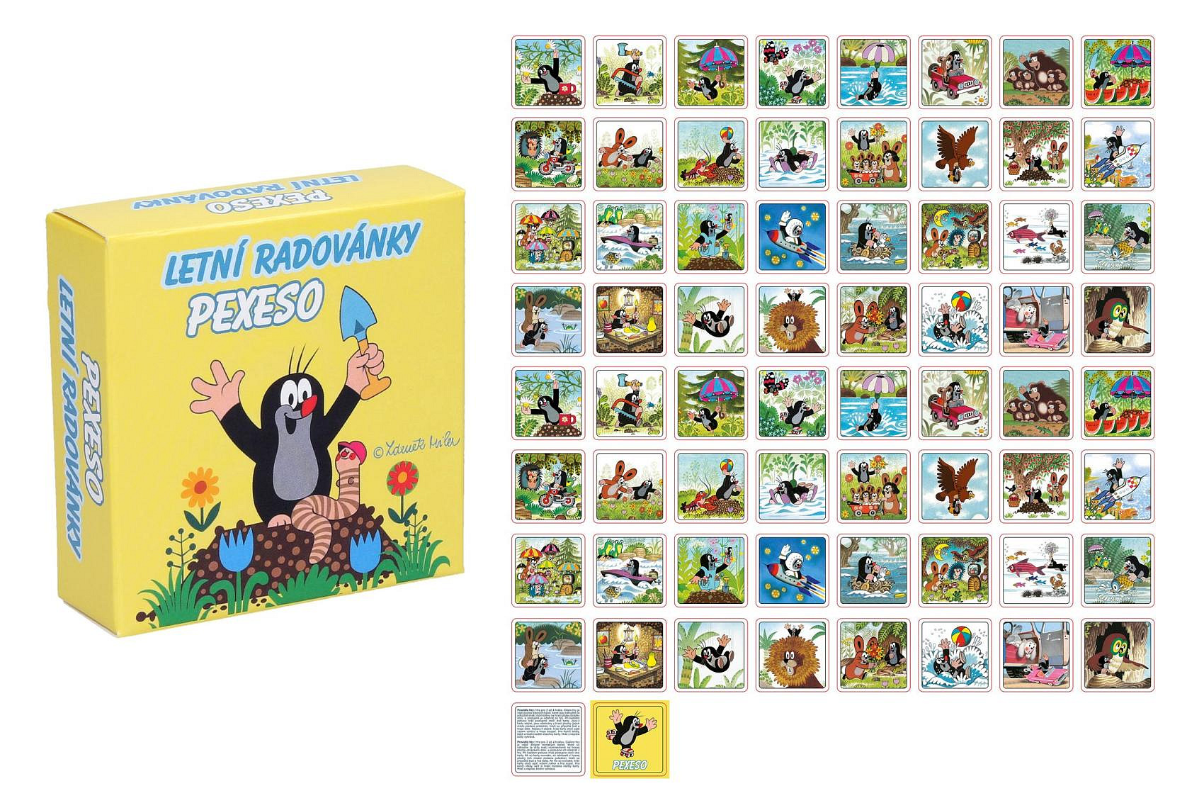 Krtek Pexeso v krabičce letní radovánky. 64 kartiček, 32 párů. Rozměr kartiček 63x63mm. Papír 350g.