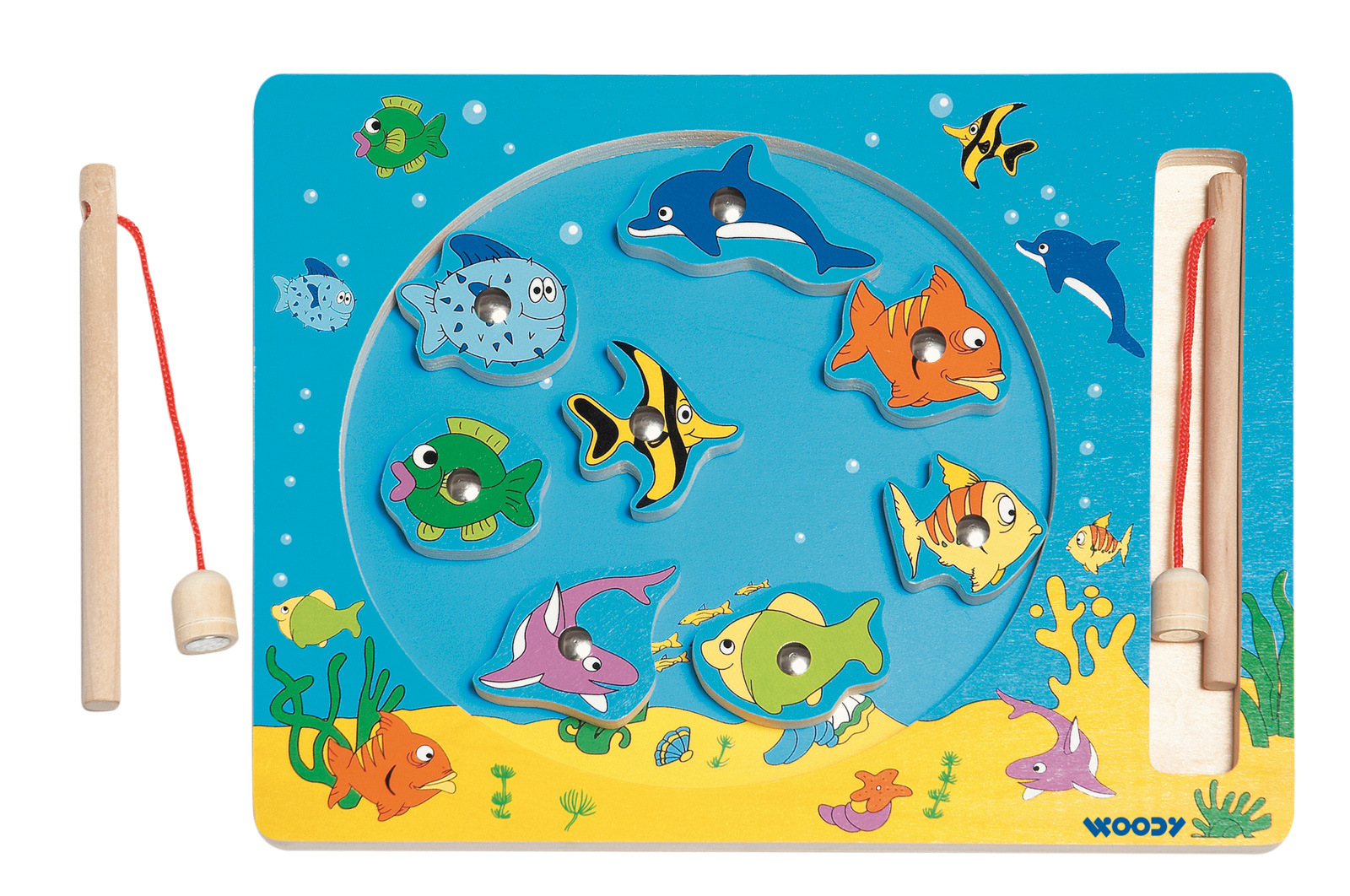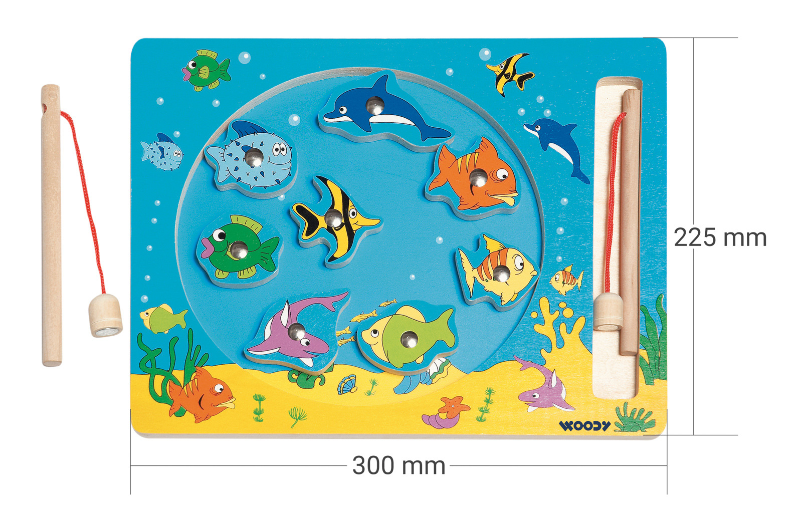 Vek: 3+ | Rozmery: 30 x 23 cm | Farebné drevené rybičky majú v sebe kovový dielik, za ktorý ich ulovíte magnetickou udicou. Hra je vhodná na precvičovanie motoriky a trpezlivosti.