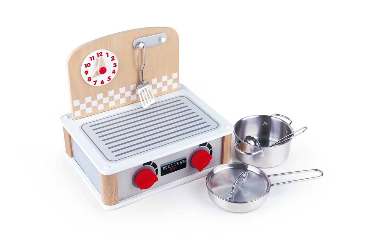 Zahrajte sa na kuchára! S touto realistickou kuchynskou a grilovacou sadou 2v1 bude hra ešte zábavnejšia! Súprava obsahuje 6 ks príslušenstva. Gombíky sú otočné a hodiny nastaviteľné. Hračka rozvíja detskú fantáziu a predstavivosť. Rozvíja jemnú motoriku a koordináciu očí a rúk. Vyrobené z kvalitného a odolného dreveného a kovového materiálu. Vek: 3+. Rozmer: 30 x 23 x 26 cm.