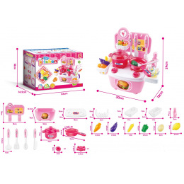 Mini kuchyňka, ve které se dá vařit spoustu dobrot. Rozměr kuchyňky 30x28x15 cm. Kuchyňka obsahuje malé nádobí, kuchyňské náčiní, makety potravin a další příslušenství.