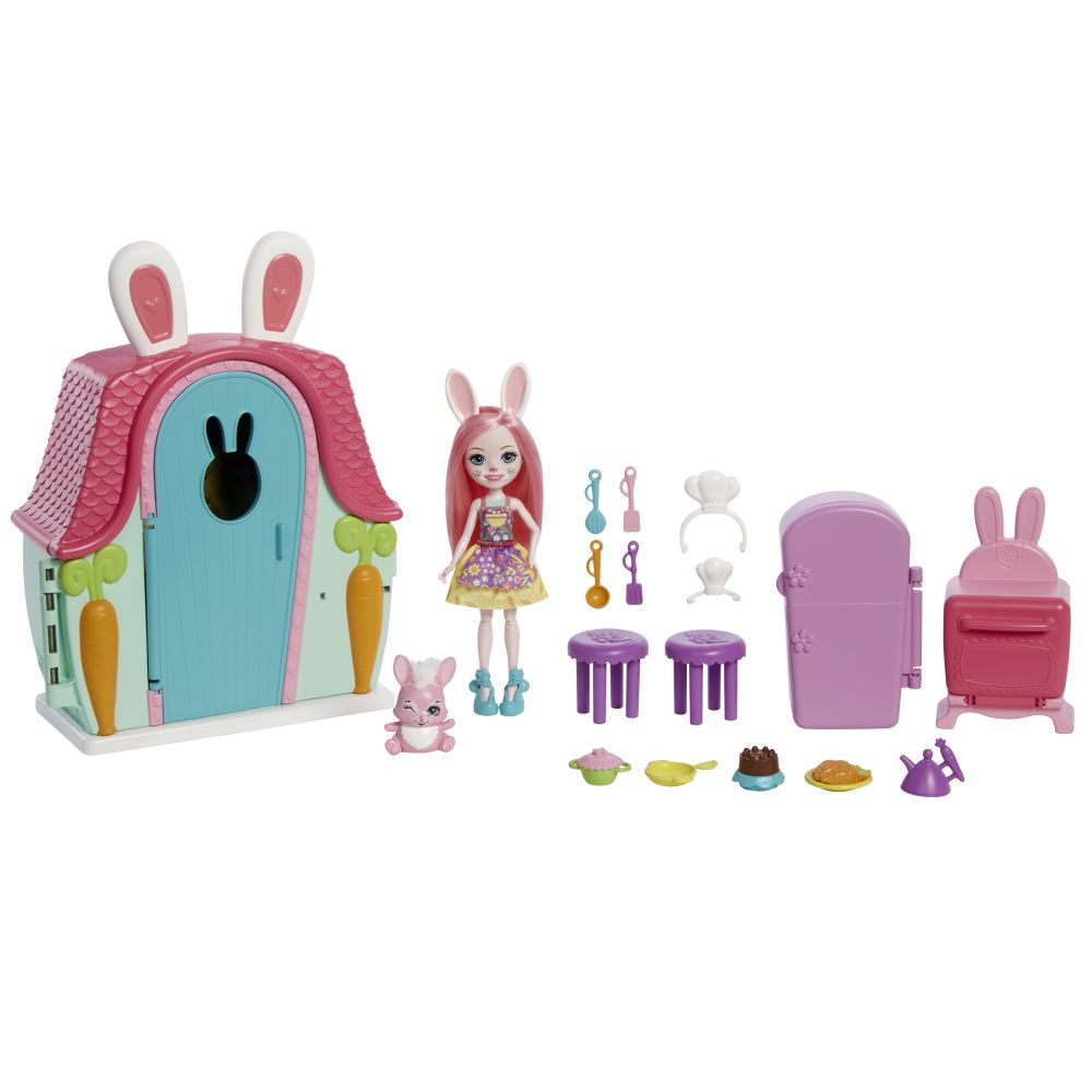 Tyto herní sety Enchantimals ™ jsou vybaveny domečkem (24 cm), 1 panenkou (15 cm), 1 figurkou zvířecího miláčka a doplňky. Vyberte si z panenek Bree Zajíčkové a Patter Pávové a jejich rozkošných domečků! Otevřete domeček a odhalte okouzlující interiér se zábavnými funkcemi, jako jsou rozkládací stolky. Příslušenství, jako je lednička, sporák a skříně s dvířky, které se skutečně otevírají, podněcují k vyprávění příběhů. Panenka, mazlíček a doplňky se vejdou dovnitř domečku pro snadné uklizení po skončení hraní a děti si domeček mohou vzít snadno sebou i na cesty. Každý set se prodává samostatně, v závislosti na dostupnosti. Barvy a dekorace se mohou lišit.
