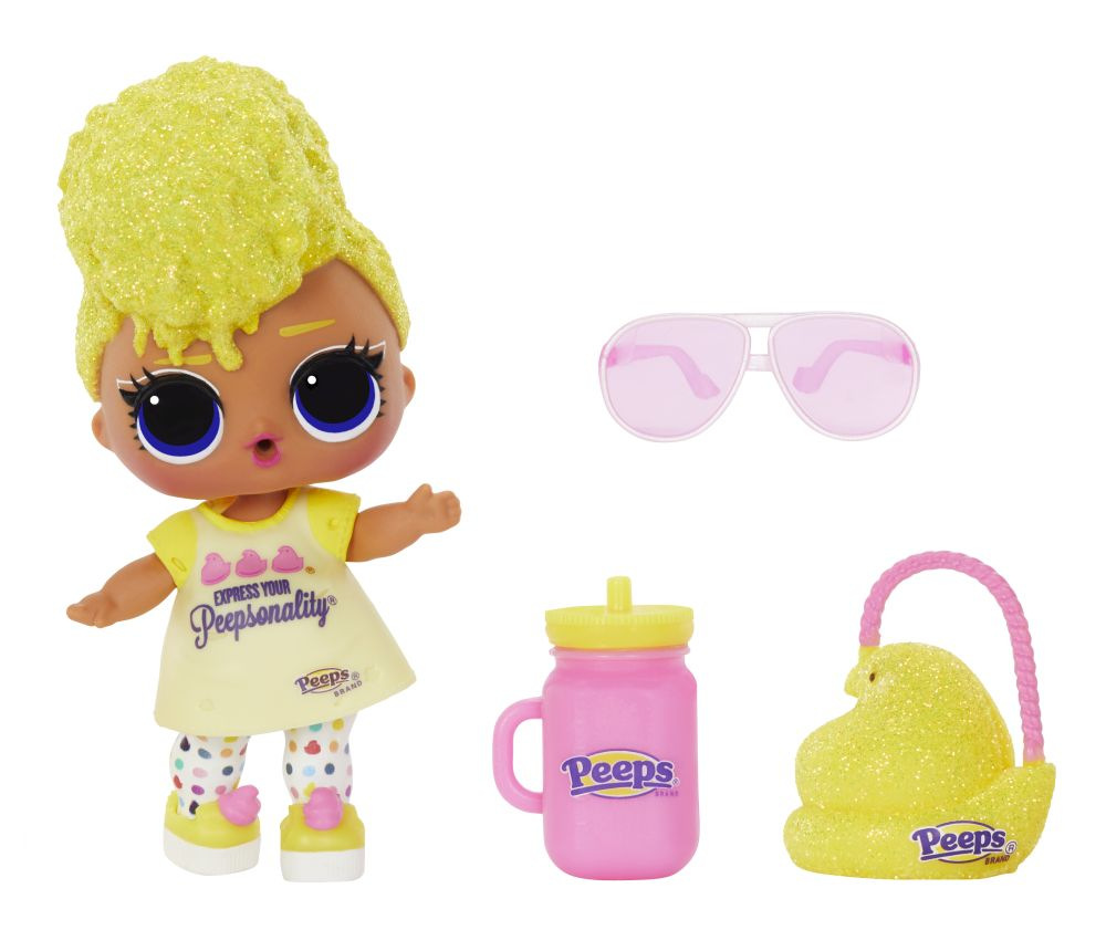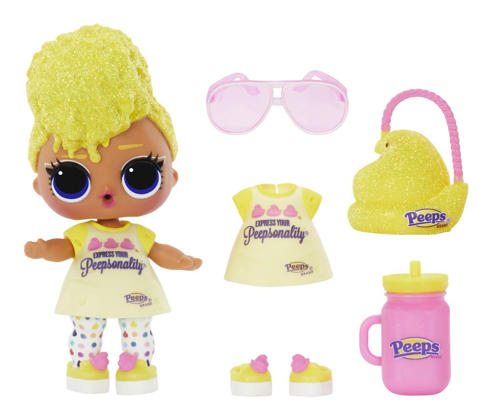 Predstavujeme limitovanú edíciu L.O.L. Surprise! Loves Mini Sweets - Peeps! L.O.L. Surprise! sa spojilo so značkou cukroviniek Peeps, aby vám priniesla najdivokejšiu jar všetkých čias. Každá bábika má jedinečný štýl s trblietavými detailmi, ktoré ladia s obľúbenými cukrovinkami Peeps! Rozbal 7 prekvapení a jednu z dvoch bábik Tough Chick alebo Cute Bunny. Keď dáš bábike napiť z fľašky, bude pľuvať vodu.