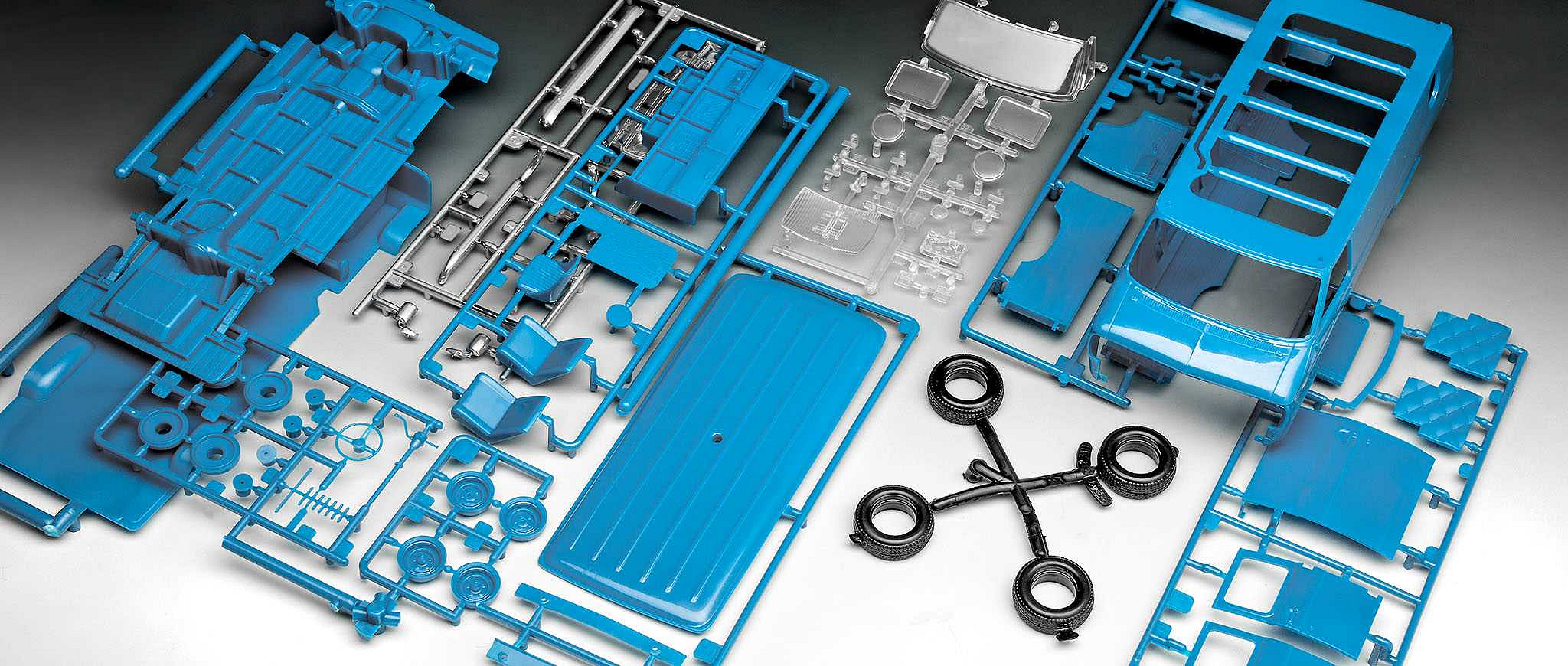 Model auta ke slepení. Velikost: 1:25; 20,6 cm. Balení obsahuje: 73 dílků ke slepení, lepidlo, štětec a barvičky.