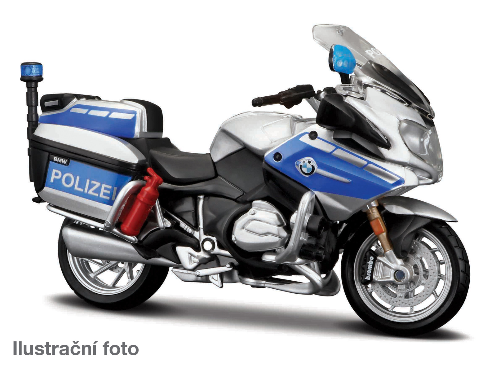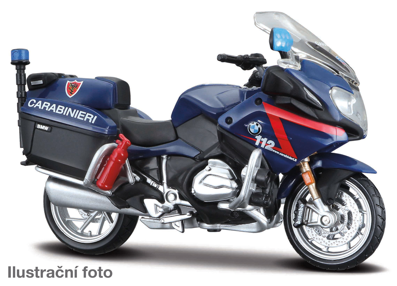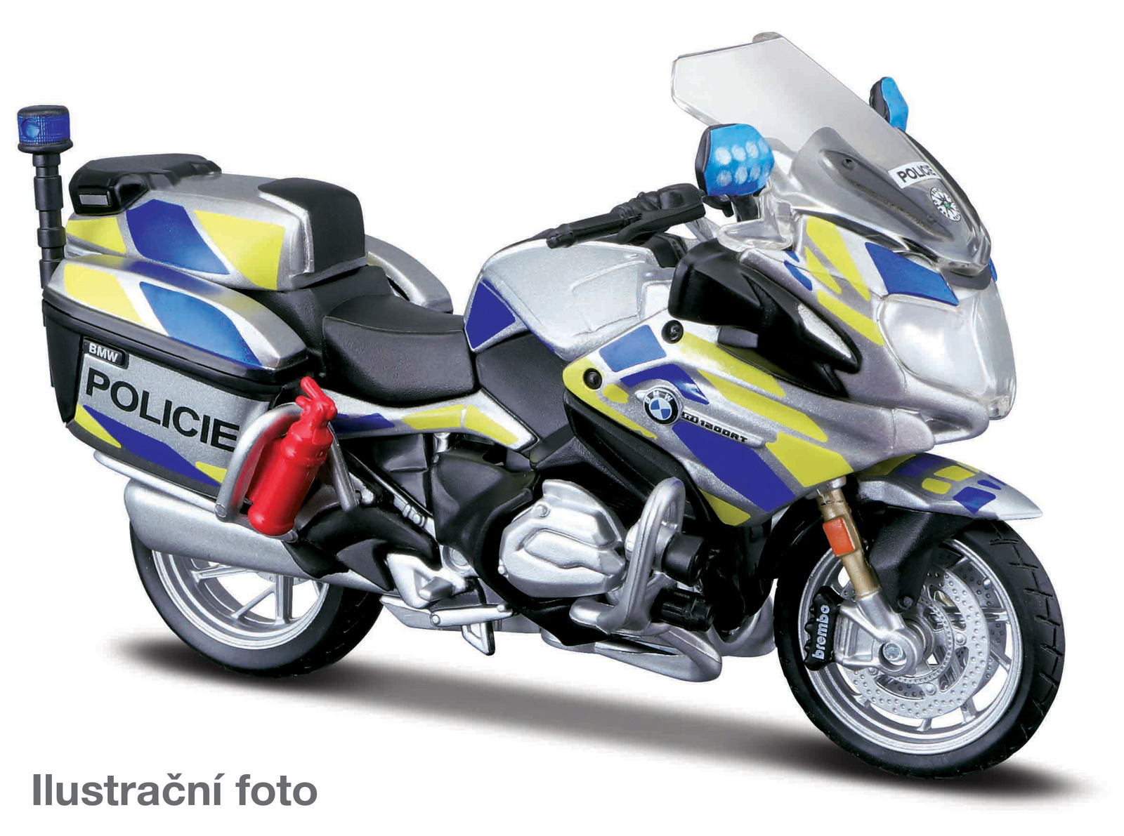 Design Authority Policajné Motocykle. Kovové modely policajných motocyklov v modelovom meradle 1:18. Varianty k dispozícii: Polícia BMW R 1200 RT - Česká republika, Polícia BMW R 1200 RT - Nemecko, Polícia BMW R 1200 RT - Taliansko, Polícia BMW R 1200 RT Veľká Británia. Motocykle majú otočné riadidlá a odpruženú zadnú nápravu. Sú usadené na čiernom plastovom podstavci. Nevhodné pre deti do 3 rokov. Assort je náhodný mix modelov. Výber nemožno ovplyvniť. Vek: 3+